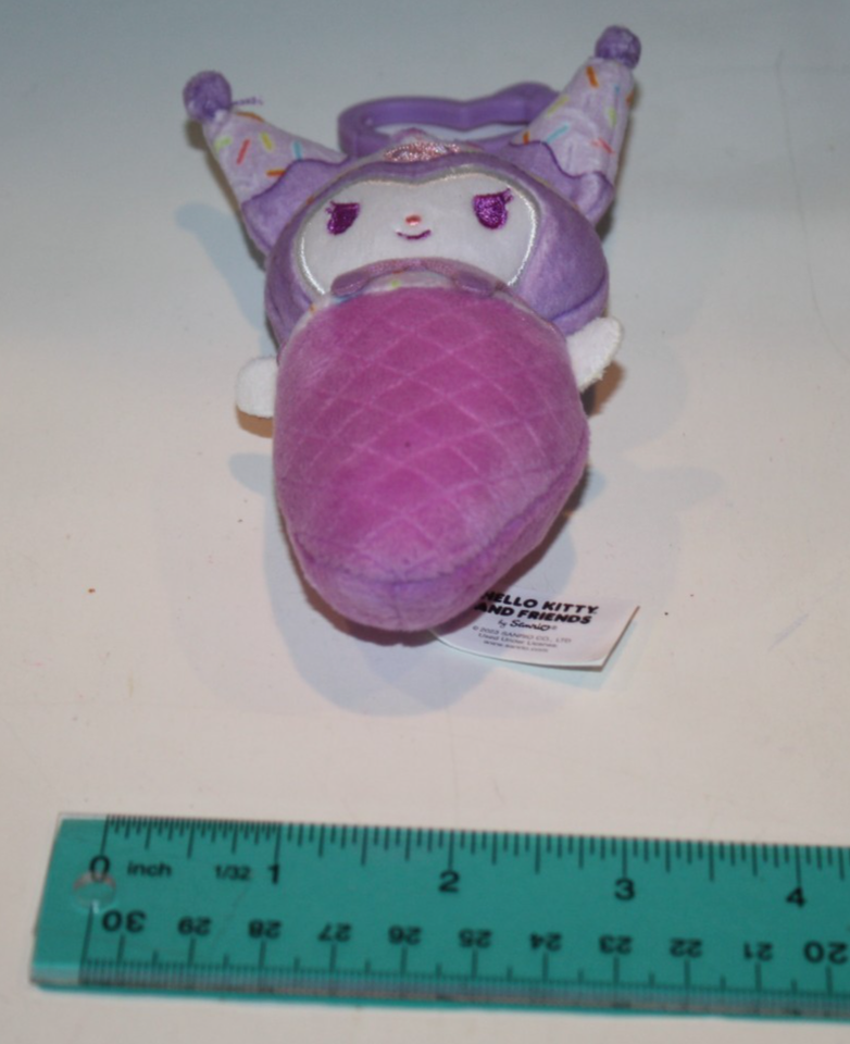 Hello Kitty & Friends Kuromi Backpack Clip 5" Purple Plush Ice Cream Cone 2023