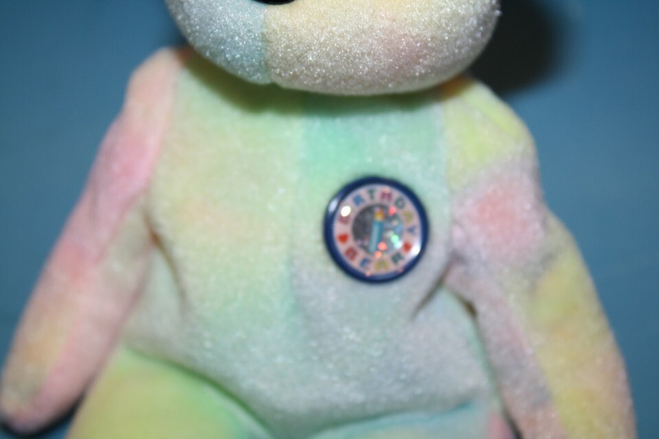 Ty Beanie Babies Baby Happy Birthday B B Bear 8" Tie Dye Plush Pastels Soft Toy