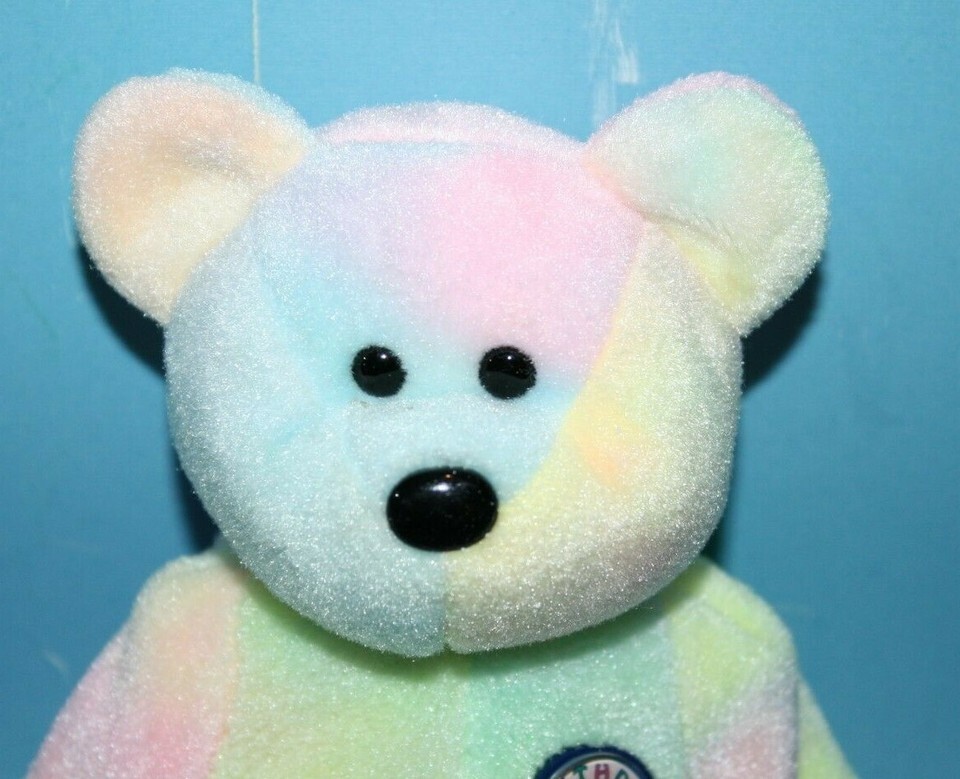 Ty, Beanie Babies Baby, B B BEAR, Approx 8 inch, Tie Dye Plush, RETIRED, Happy Birthday, Pastels, Soft Toy, Stuffed, Bean Bag, Animal