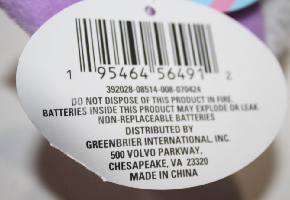 Tag: Tush Tag and Paper Swing Tag (Paper swing tags may be bent/creased from storage)