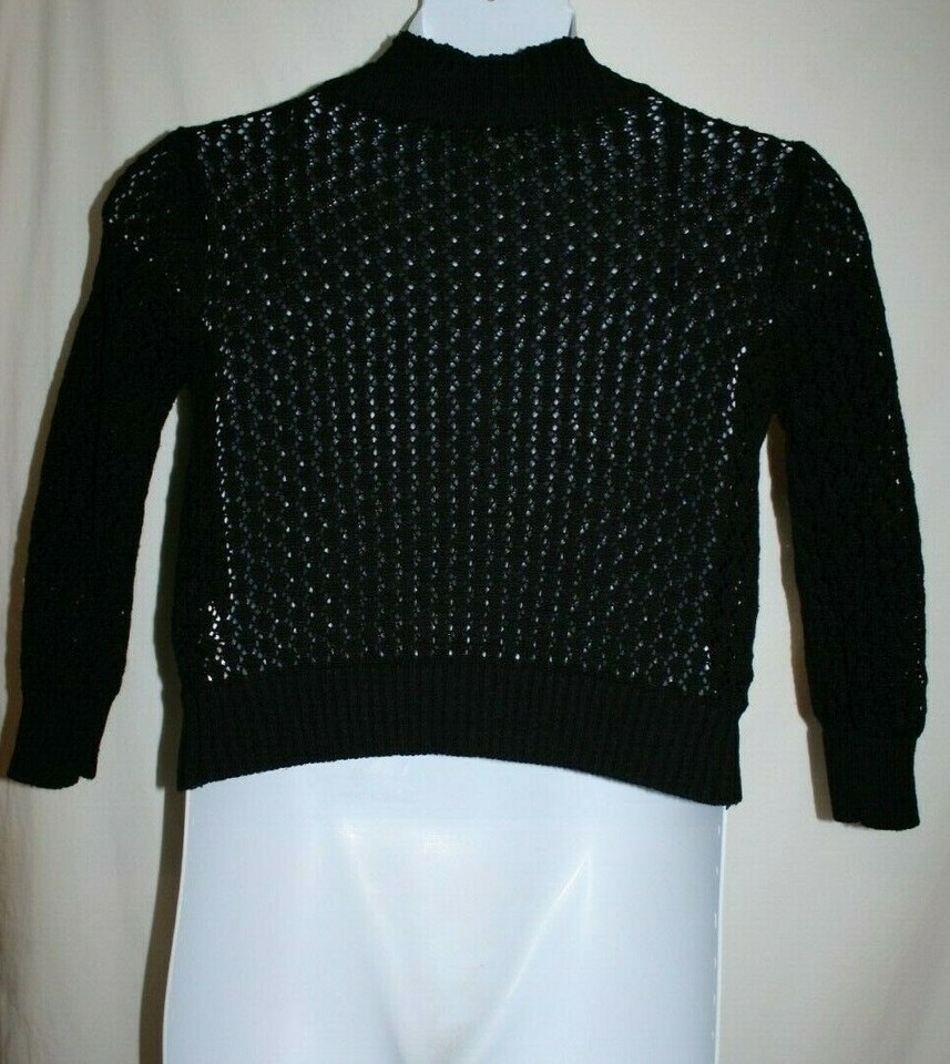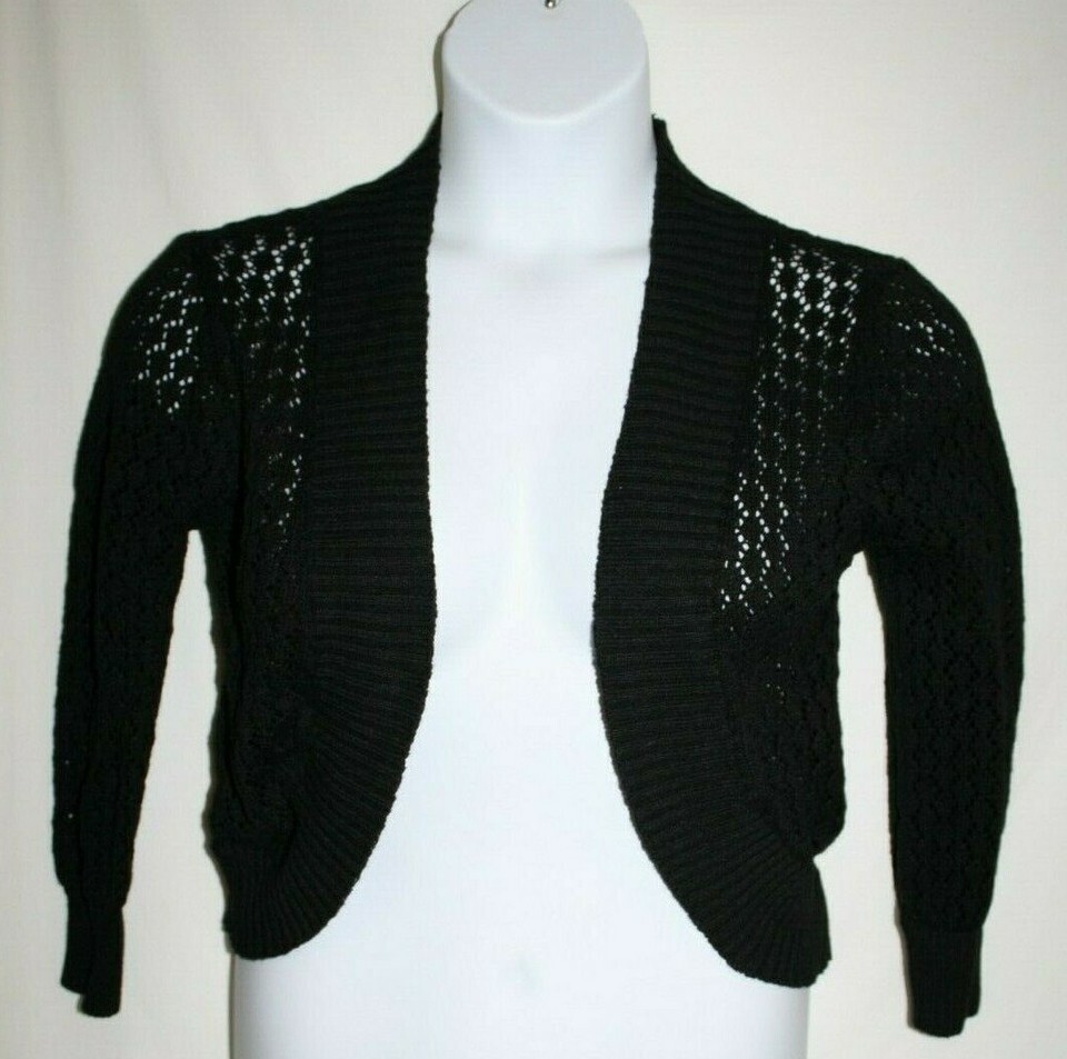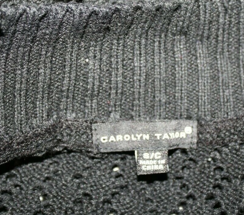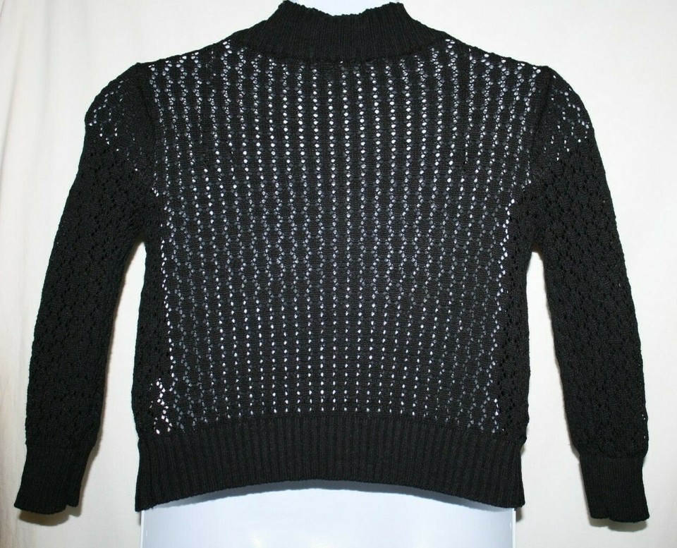 Carolyn Taylor Misses SMALL Black Cardigan Sweater Long Sleeve Open Weave Front