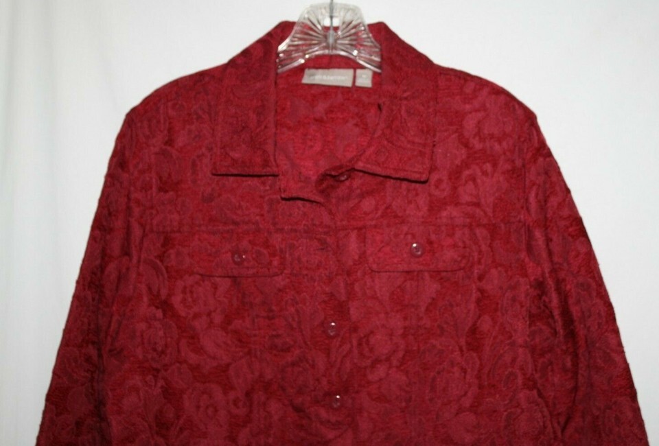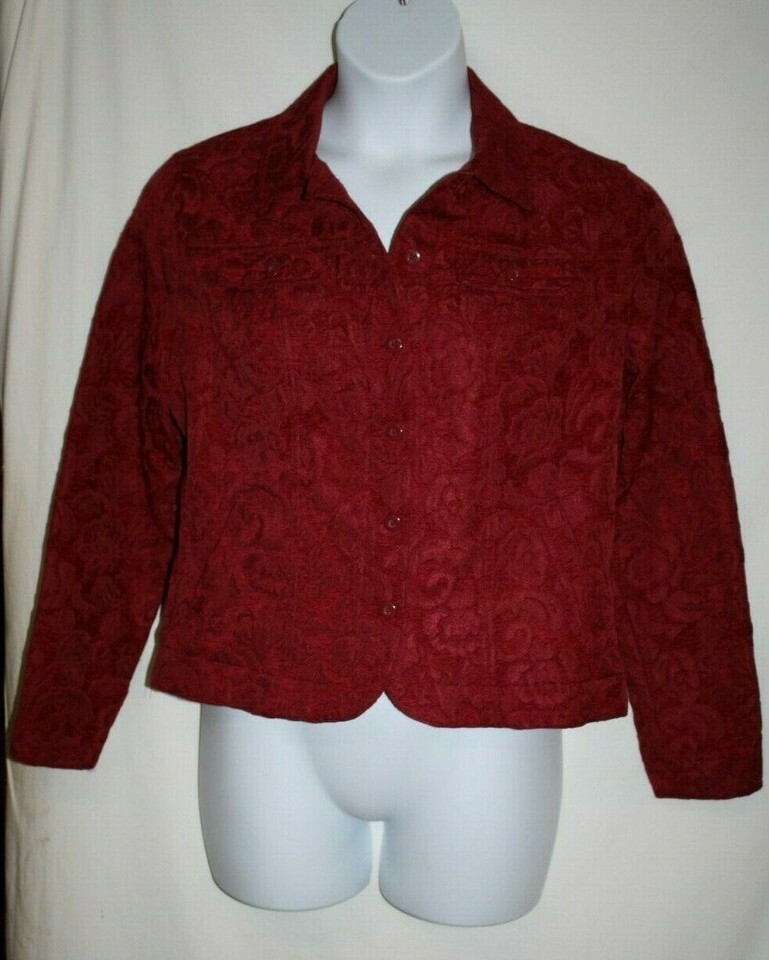 Croft & Barrow Misses MEDIUM Jacket Career Blazer Red Burgundy Tapestry Buttons