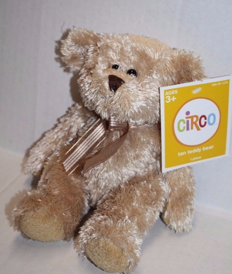 Target Circo Teddy Bear 9" Gold Bow Beige Tan Plush Stuffed Animal Sits 6" NEW