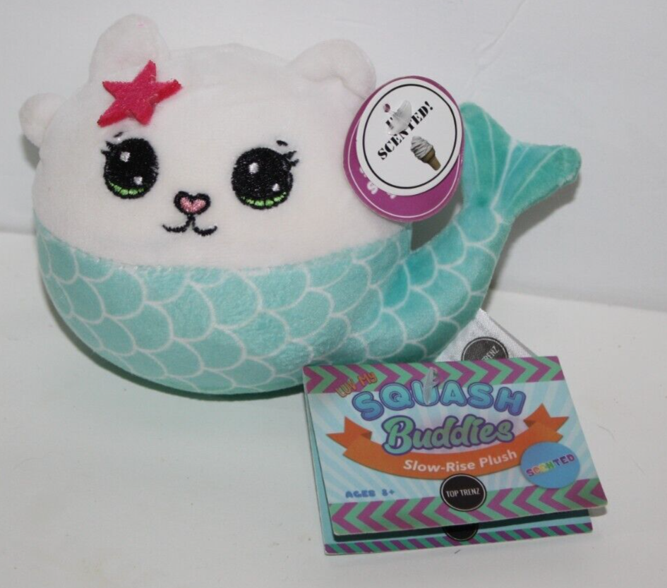 Top Trendz Squash Buddies Mer-Kitty Mermaid Cat, Approx 6 inch, Soft Toy, Plush, Scented, Stuffed Animal