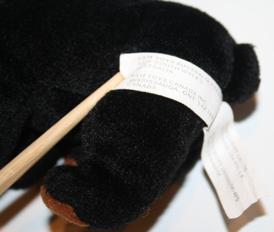 K M International, Baby Black Bear Cub, Black Plush, Brown Plush around Eyes, on Bottoms of Feet and Muzzle, Black Plush Nose, Plastic Eyes, Plush, Mini, Approx 6 inch Nose to Rump, Soft Toy, Stands Approx 3 inch Head to Front Foot, Stuffed Animal