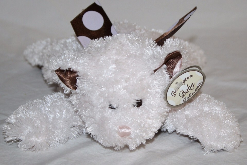 Bearington Baby, Brown Satin and Pink Polka Dot, Plush, Laying, Teddy Bear, Rattle, Approx 10 inch, Stuffed Animal, Baby Girl's, Soft Toy, New with Tag