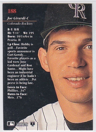 M) 1993 Leaf Studio MLB Baseball Trading Card - Joe Girardi #188