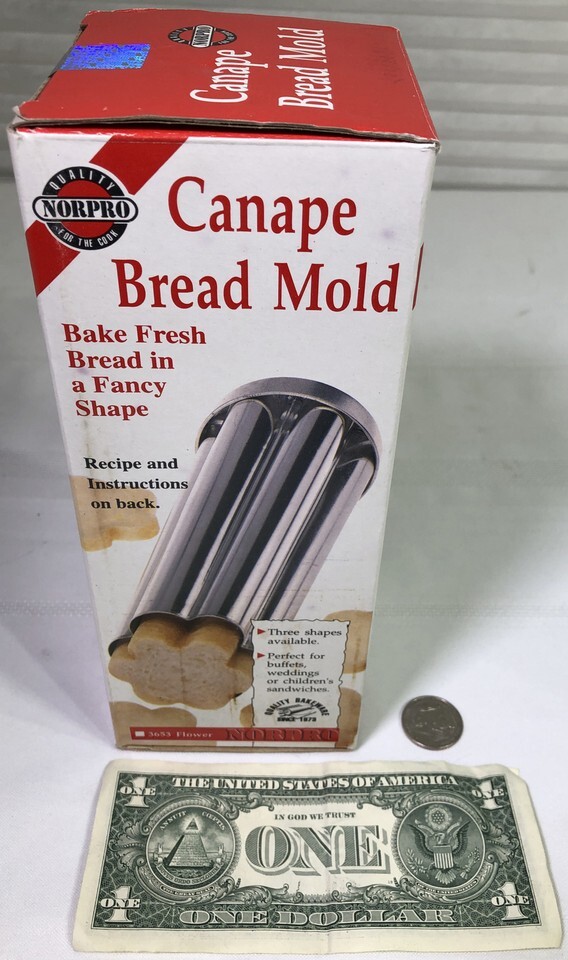 Norpro Canape Bread Mold is brand new in original box and plastic. Very clean Heart shaped mold. Sold as is. Buyer pays return shipping.
