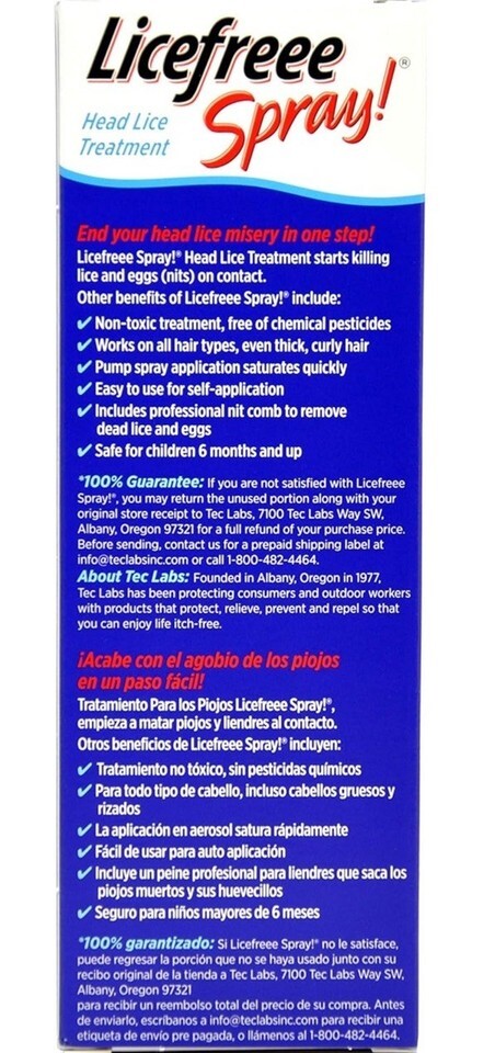 Licefreee Spray Non-Toxic Kills Super Lice And Eggs 6 fl oz WORKS !!!