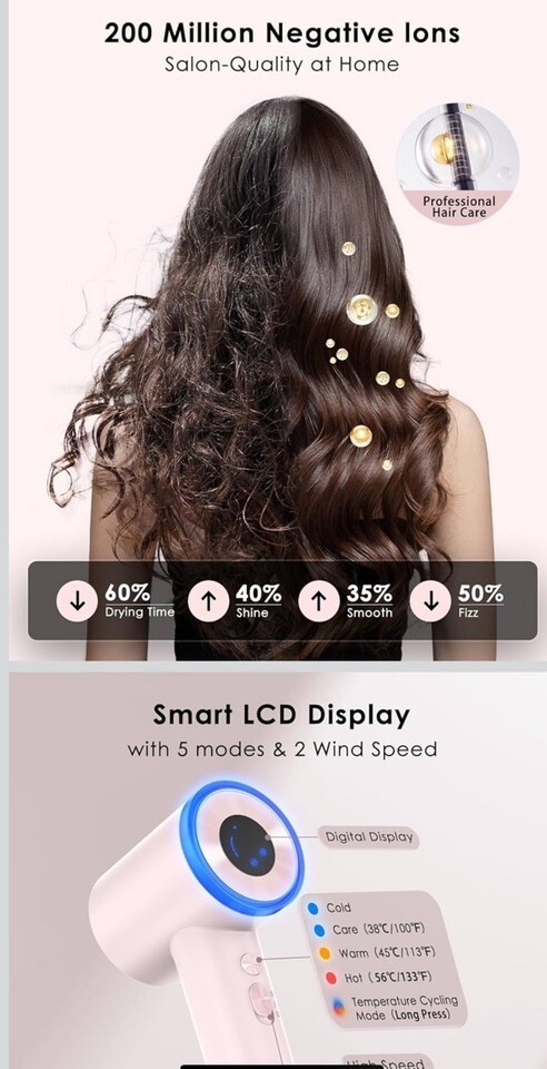 Hair Dryer, High Speed Fast Drying Hair Dryers, Negative Ionic Portable Blow Dry