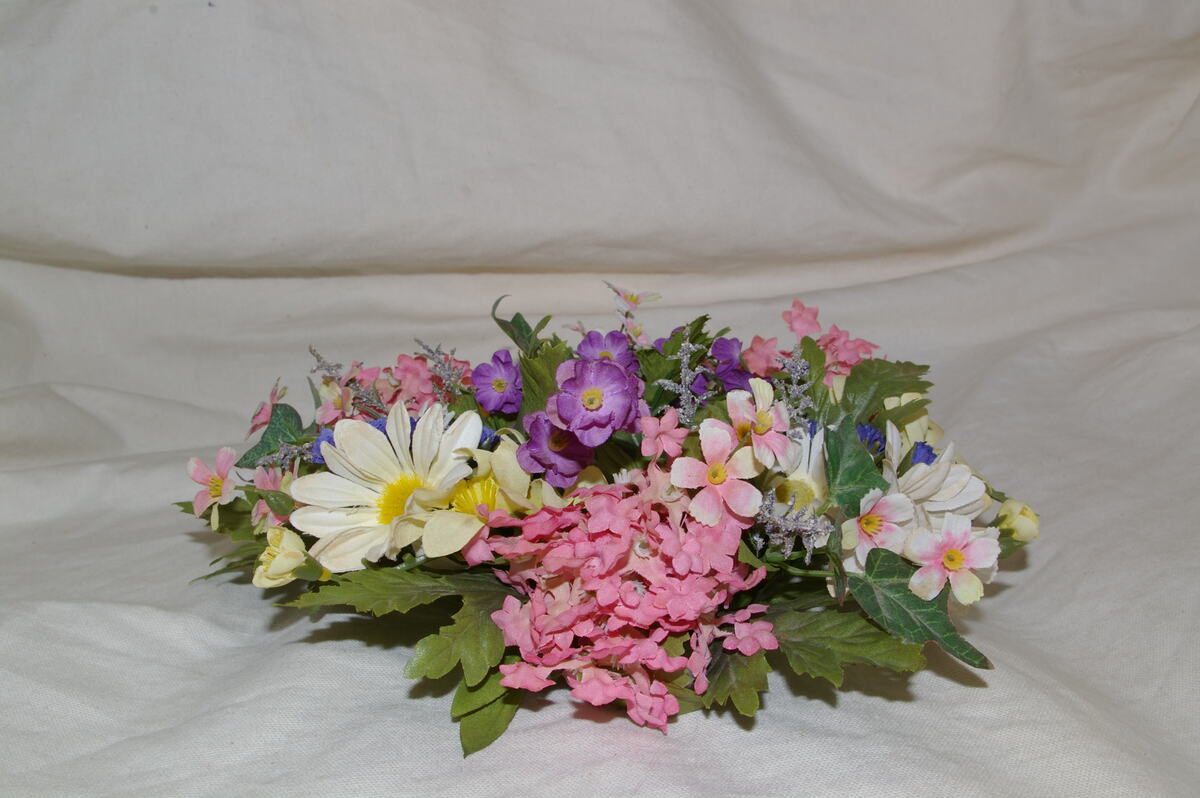 Add a loving touch to your favorite candle with this lavish ring of cheerful, fresh spring pastels.