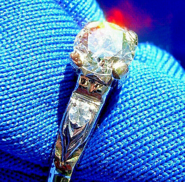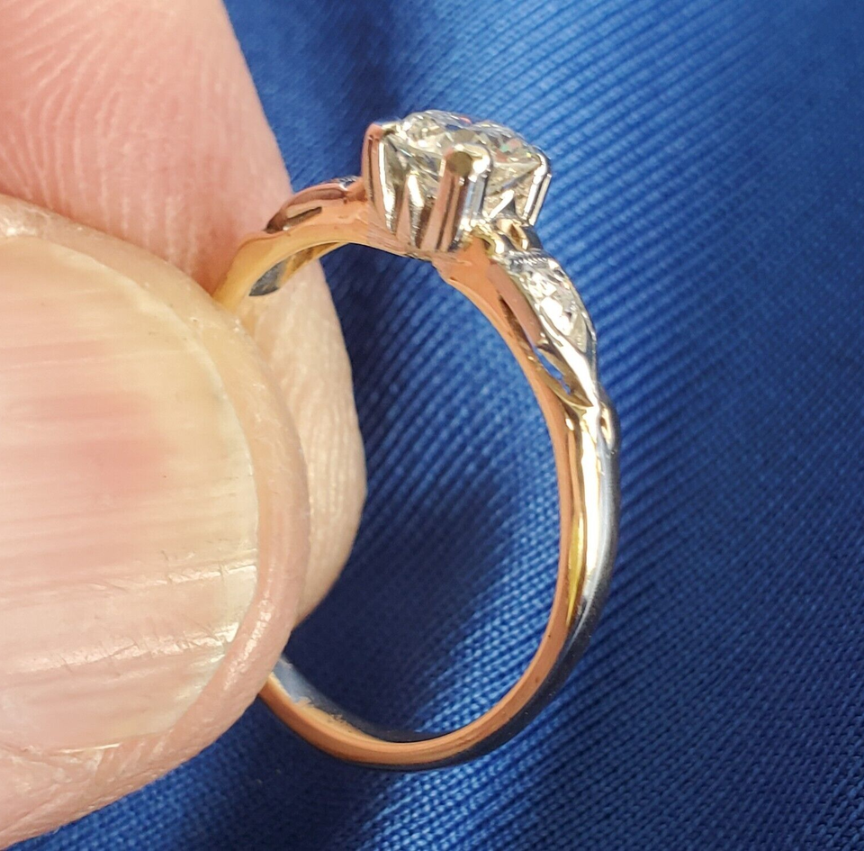 Earth mined Diamond Deco Engagement Ring 0.53 carat Vintage Solitaire 14k Gold