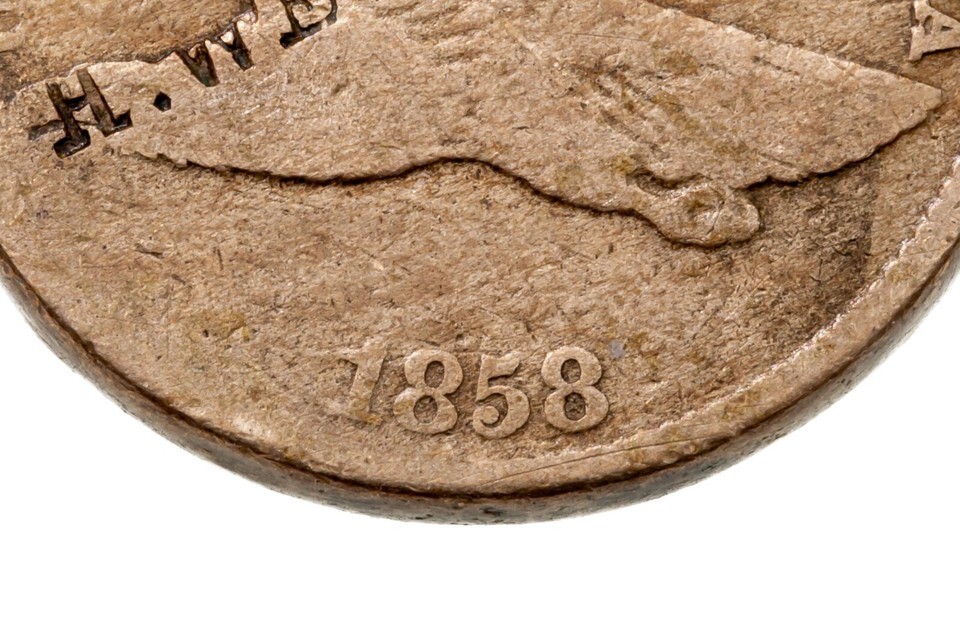 1858 1C Flying Eagle Cent in Good Condition, With "H. WETTSTEIN" Counterstamp