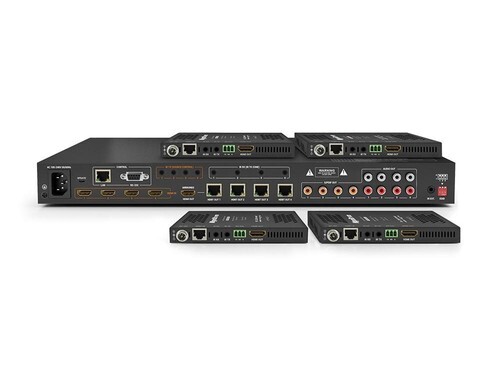 Integrates one streaming media input, one HDMI output, and one stereo audio de-embedding output