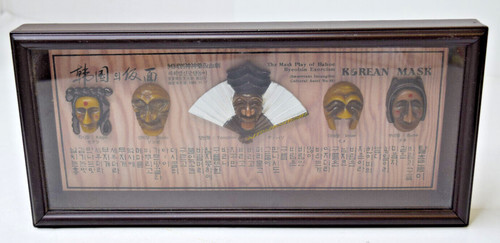 KOREAN MASKS Large Wooden Glass Frame Shadow Box 6 Traditional Masks: