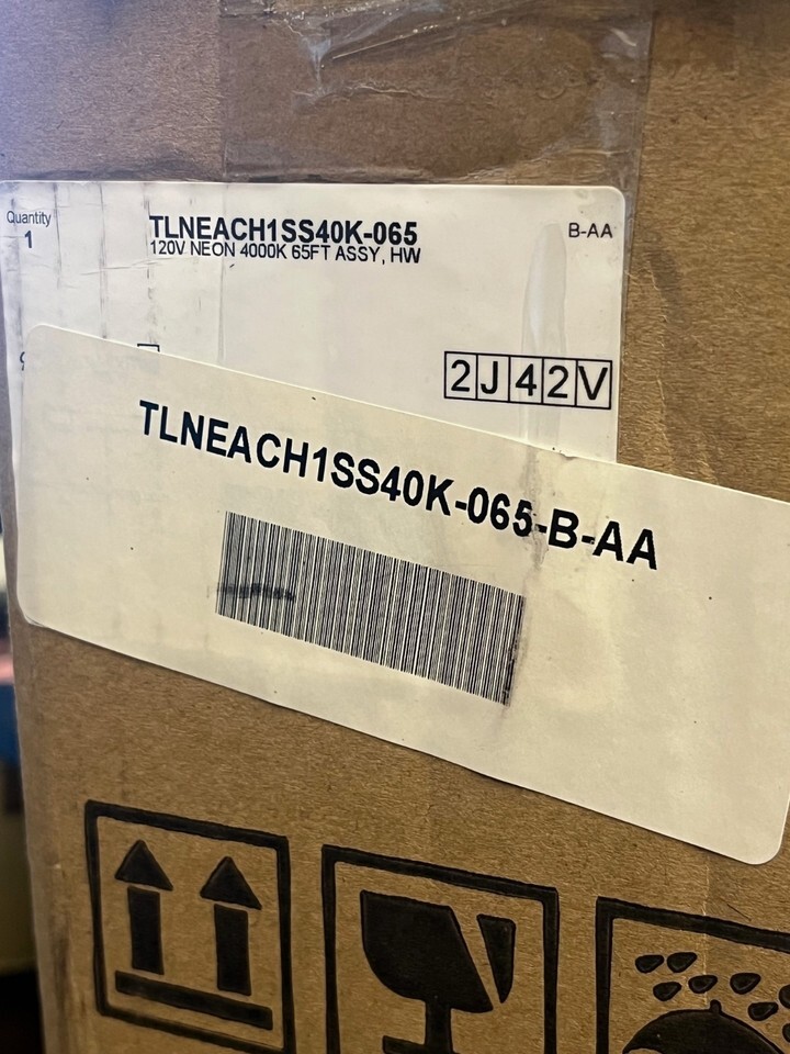 ConTech Lighting TLNEACH1SS40K-065 65-foot 120V neon-look LED flex strip light, neutral 4000K color temperature, high CRI, IP65 wet location rating, and long lifespan. Open box, brand new.