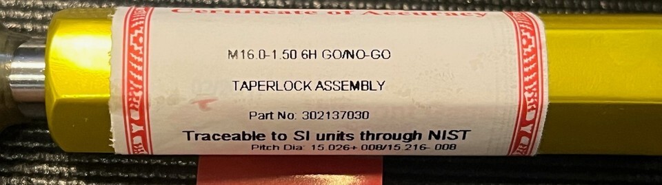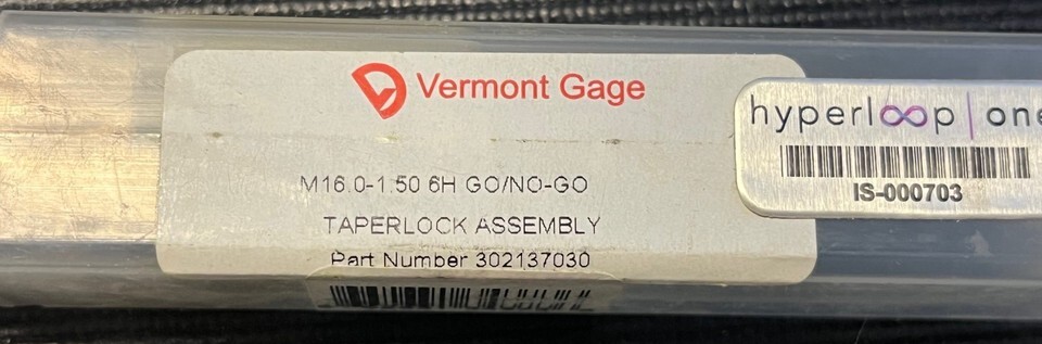Vermont Gage M16x1.50 6H Go/No-Go Taperlock Plug Gage Assembly 302137030 NEW