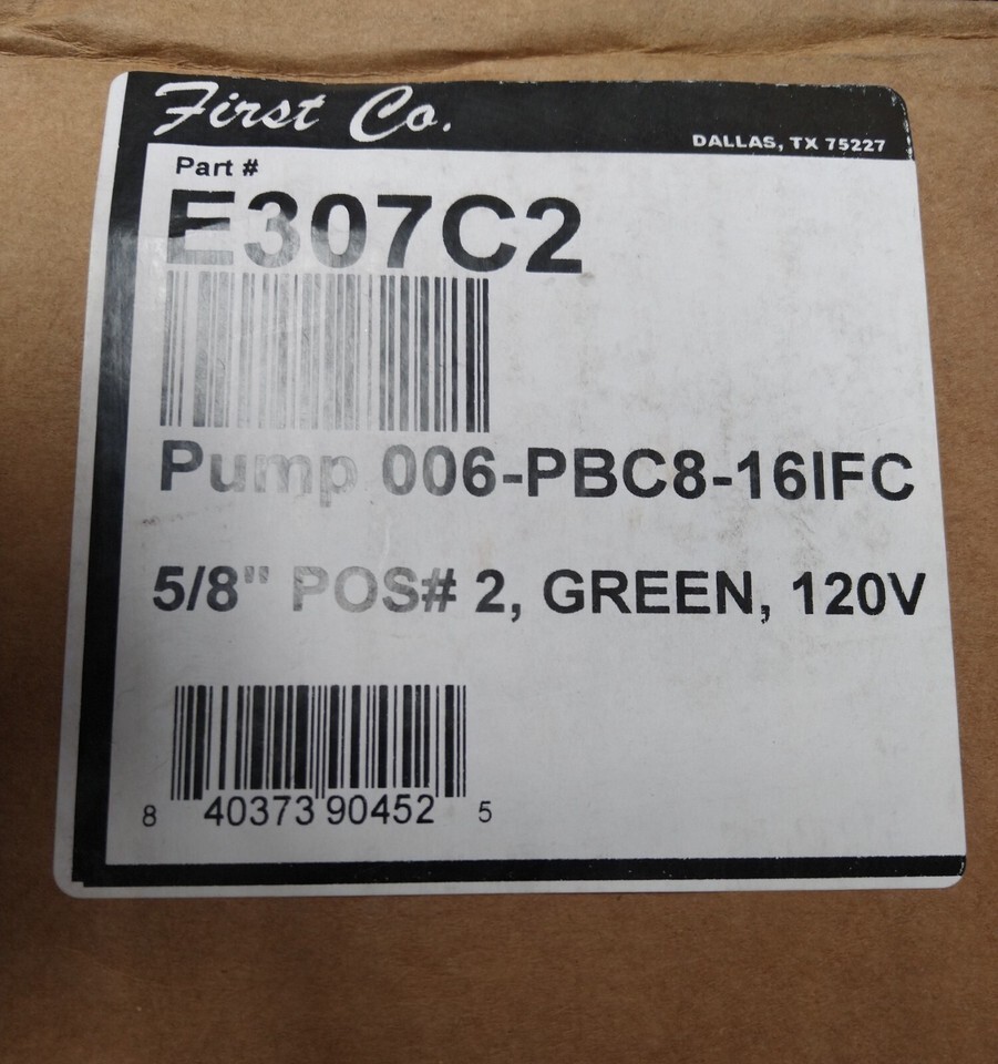 The First Company E307C2 Pump, 006-BC8-15IFC is a tough and efficient pump that can be utilized in HVAC systems. It is commonly used in fan coil units and other HVAC applications requiring the flow of fluid. In operating water or different fluids, throughout the system to keep the temperature at a consistent level for maximum comfort. This Pump is built for reliability and improves HVAC system performance, reduces energy consumption and provides long lasting operation. It?s easy to install and maintain and a valuable part of an HVAC system that helps increase efficiency and extend the durability of the equipment in both commercial and residential settings.