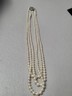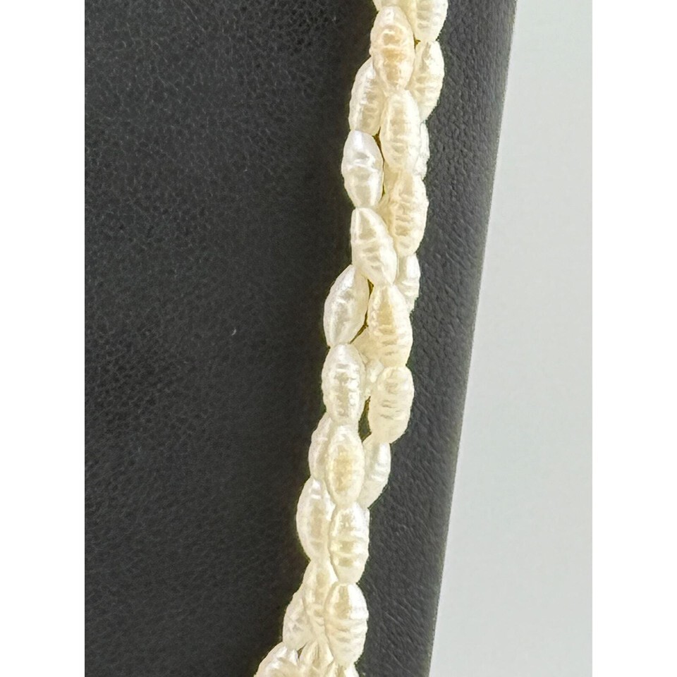 Vintage 925 Sterling Screw Clasp Seed Triple Pearl Necklace
