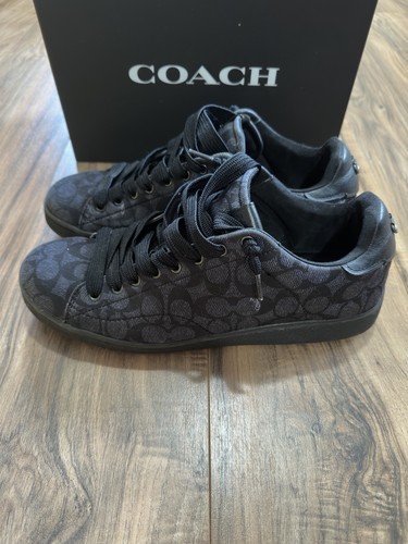 GENUINE COACH CLIP SIGNATURE LOW SIZE 12 D BLACK GRAY FASHION SNEAKER CC724 SS24