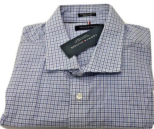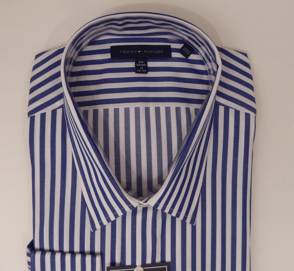 GENUINE TOMMY HILFIGER SIZE 18 34/35 XXL TALL BLUE WHITE 100% COTTON SHIRT NWT