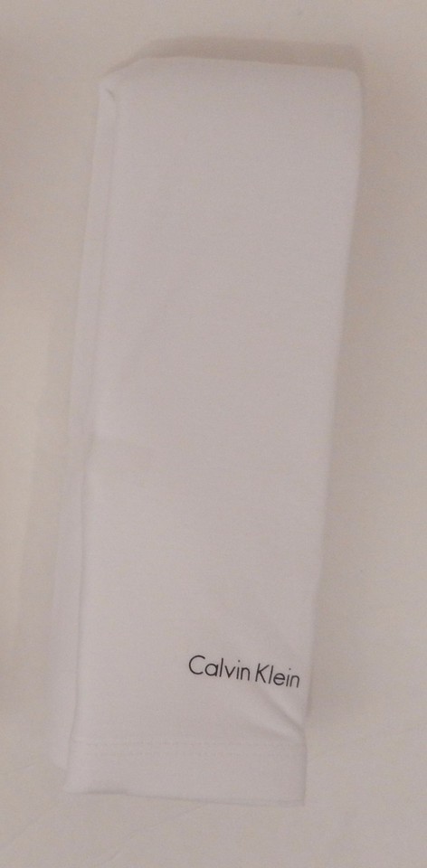 Solid white with "Calvin Klein" embossed in white on the hem.