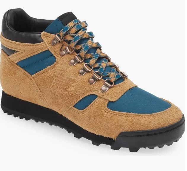 New Balance brings back a familiar face to the market. More than ever before, the hiking boot we all know of has garnished a lot of newfound love from fashion enthusiasts around the world. This model comes in a beautifully beige upper with hits of a blue fabric throughout toe and mid-foot. Metal hardware keeps your foot locked in your everyday journey as well as a Vibram sole to keep you grounded. New Balance logo is stamped onto leather panel and on the tongue.