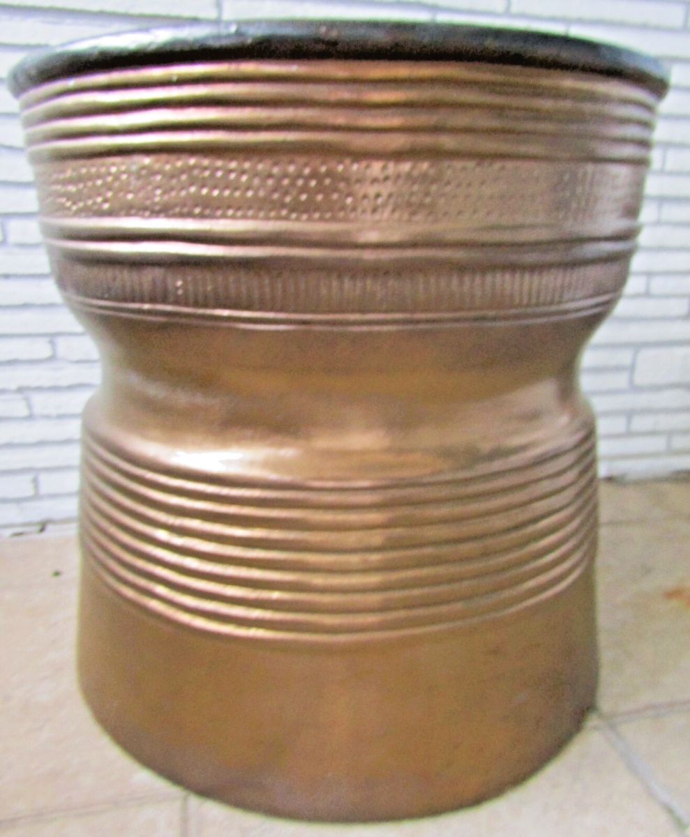 The Vintage Asian Bronze Rain Drum Black Terra Cotta Top Table is a unique and stylish side/end table with a tabletop made of terra cotta. Standing at a height of 24 inches, the table features intricate Asian design elements, perfect for adding a touch of vintage charm to any living space. The combination of bronze and terra cotta materials adds a touch of elegance and durability to this antique piece, making it a functional and decorative addition to any home.