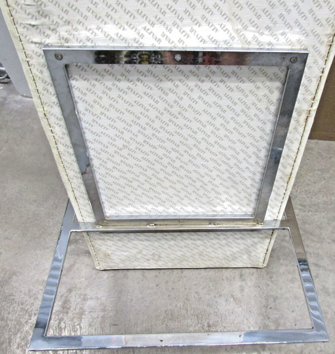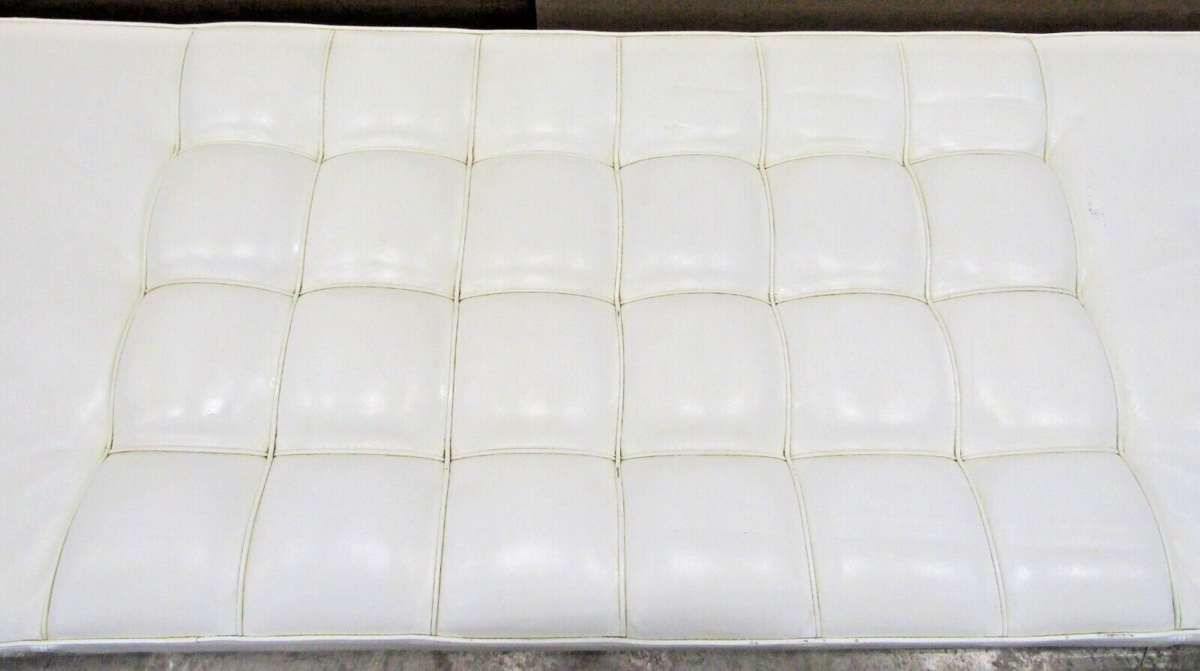The Vintage Italy Alivar Tech Bench designed by Matteo Scandola in white leather and chrome is a stunning piece of mid-century modern furniture. Made in Italy, this fully assembled rectangle-shaped bench features a sleek chrome finish and luxurious white leather upholstery. Perfect for indoor use, this original Alivar bench measures 88 inches in length, 22.5 inches in height, and 26.75 inches in width, making it a stylish and comfortable addition to any adult's living space.