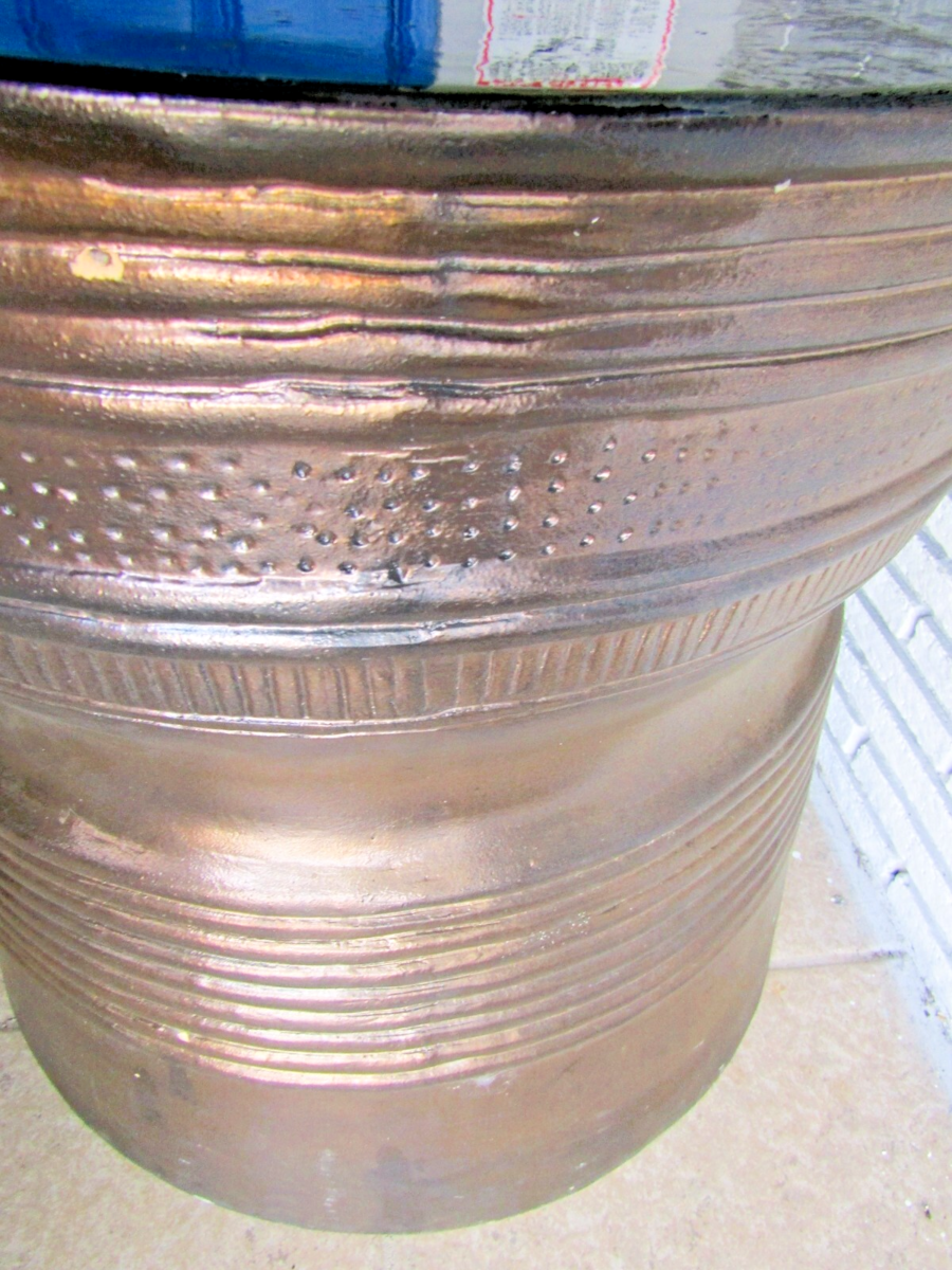 Vintage Asian Bronze Rain Drum Black Terra Cotta Top Side Table