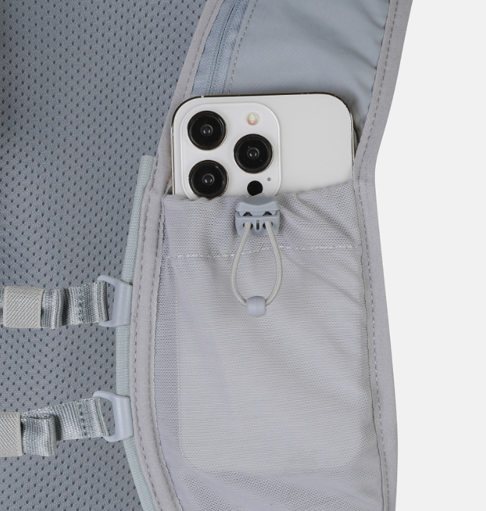 Features a front mesh pocket suitable for carrying a water bottle.