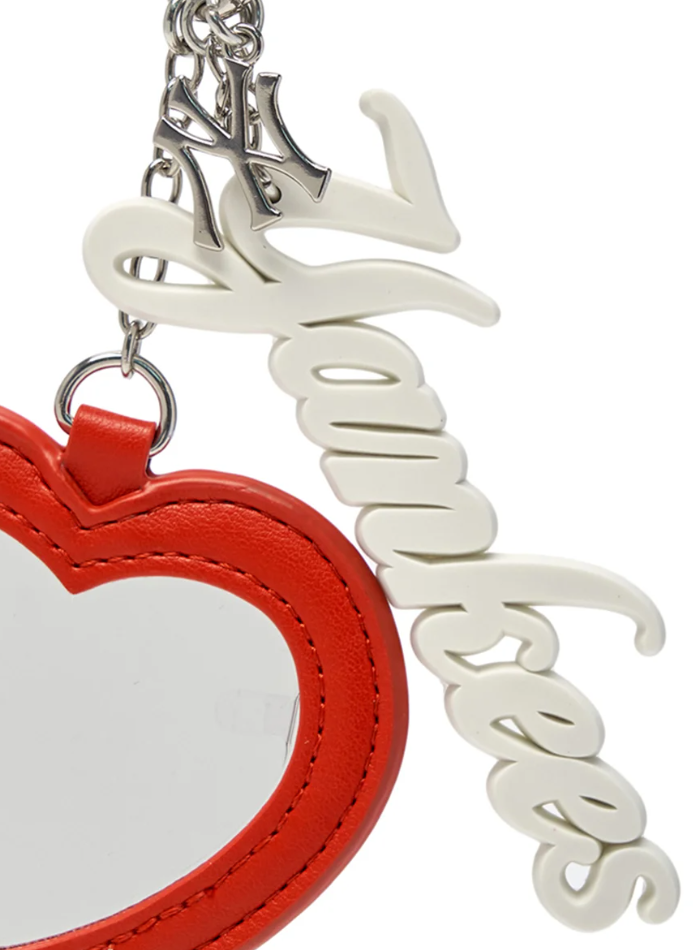 MLB NY Heart Mirror Mini Keyring New York Yankees Keychain Bag Accessory Red NWT
