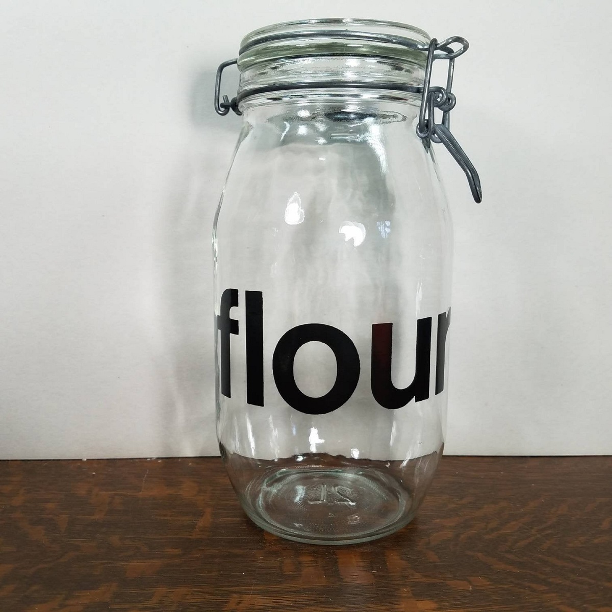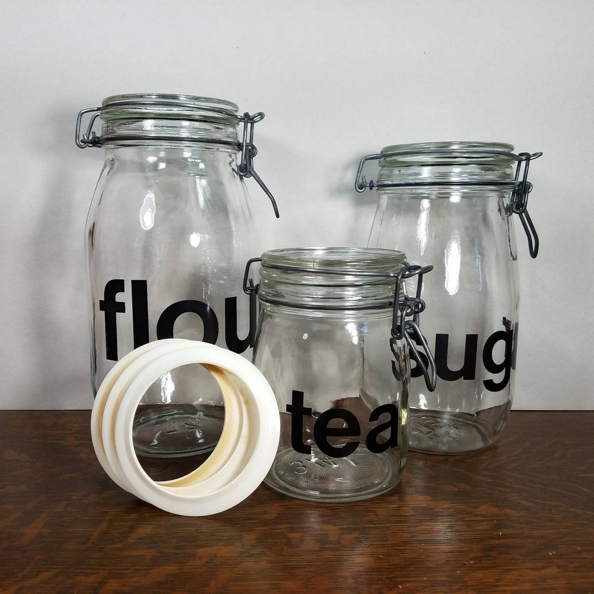 Vintage 1970s Clear Glass Hermetic Canister Set Jars Bale Wire Storage Retro Flour Sugar Tea