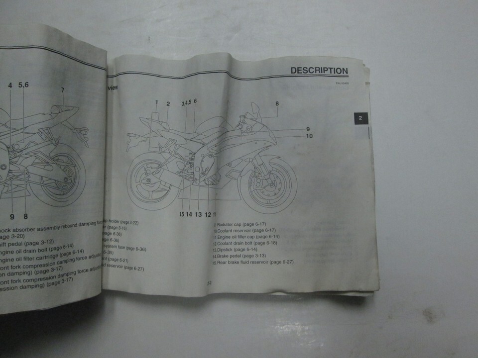 2006 YAMAHA R6 YZFR6V (C) OWNERS MANUAL WATER DAMAGED