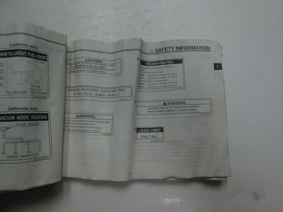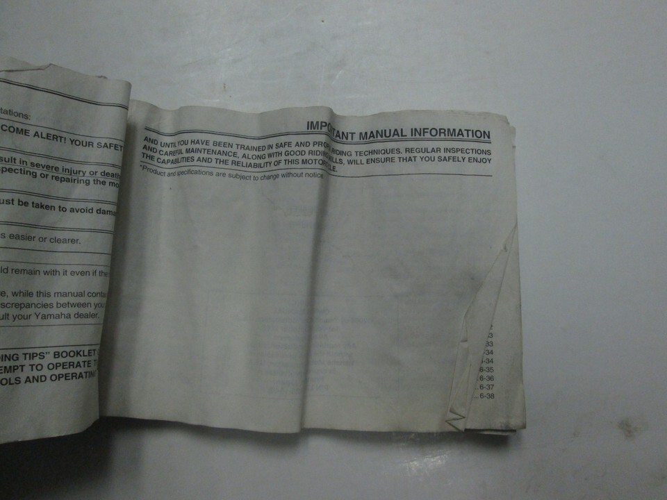 Owners manual is water damaged throughout with severely bent pages. Over all the contents within are in legible condition, and pages do not stick. This manual is published by YAMAHA , and are the same manuals the YAMAHA Mechanics/Technicians use. We will leave POSITIVE Feedback after we receive your payment. Please do not forget to give us POSITIVE Feedback and FIVE Stars on all of the Detailed Seller Ratings! If you are not satisfied with your shopping Experience, please contact us to get a solution before you decide to leave a NEUTRAL or a NEGATIVE Feedback, We will do our best to solve any problems for you as soon as possible. We will provide you with the BEST POSSIBLE service because the POSITIVE Feedback and FIVE Stars are what we are striving for. Please email me through "My Message