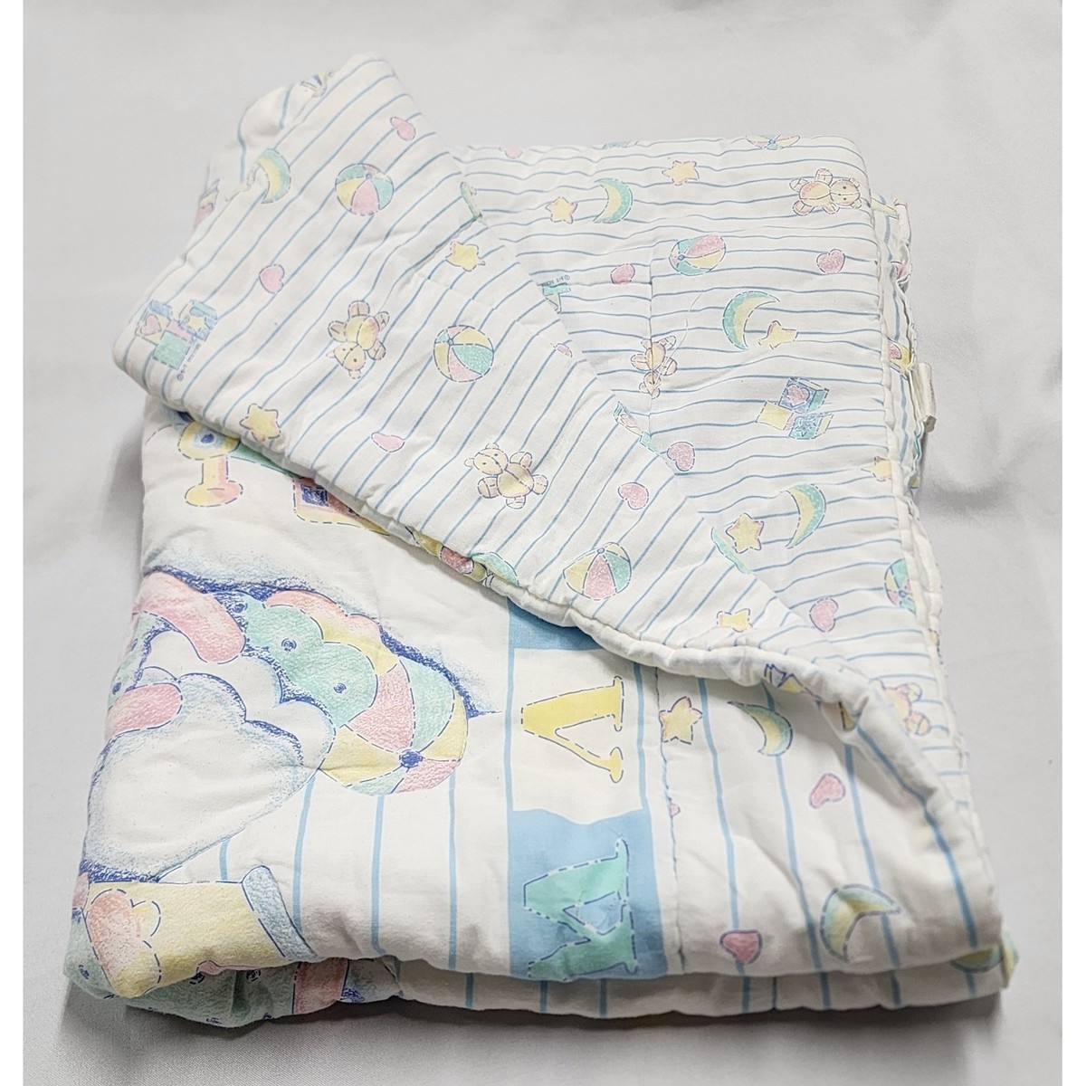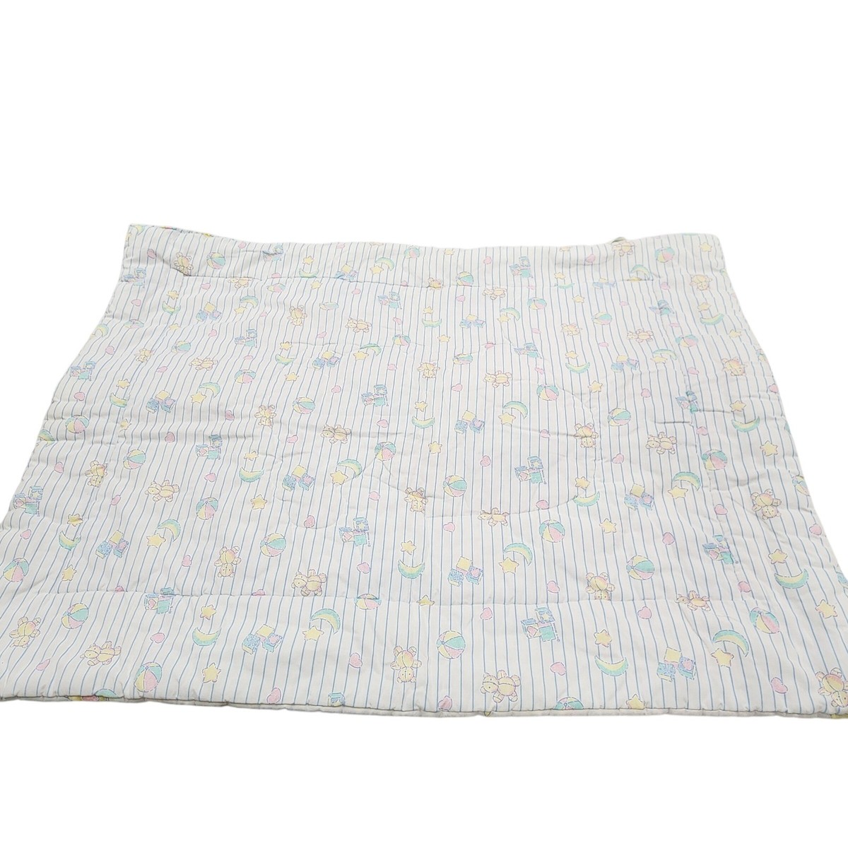 Keywords: baby quilt, crib quilt, alphabet print, teddy bear, baby toys, nursery decor, gender neutral, pastel colors, cotton polyester blend, play mat, toddler, crib decor, baby shower gift, vintage, retro, 80s, 90s, Y2K