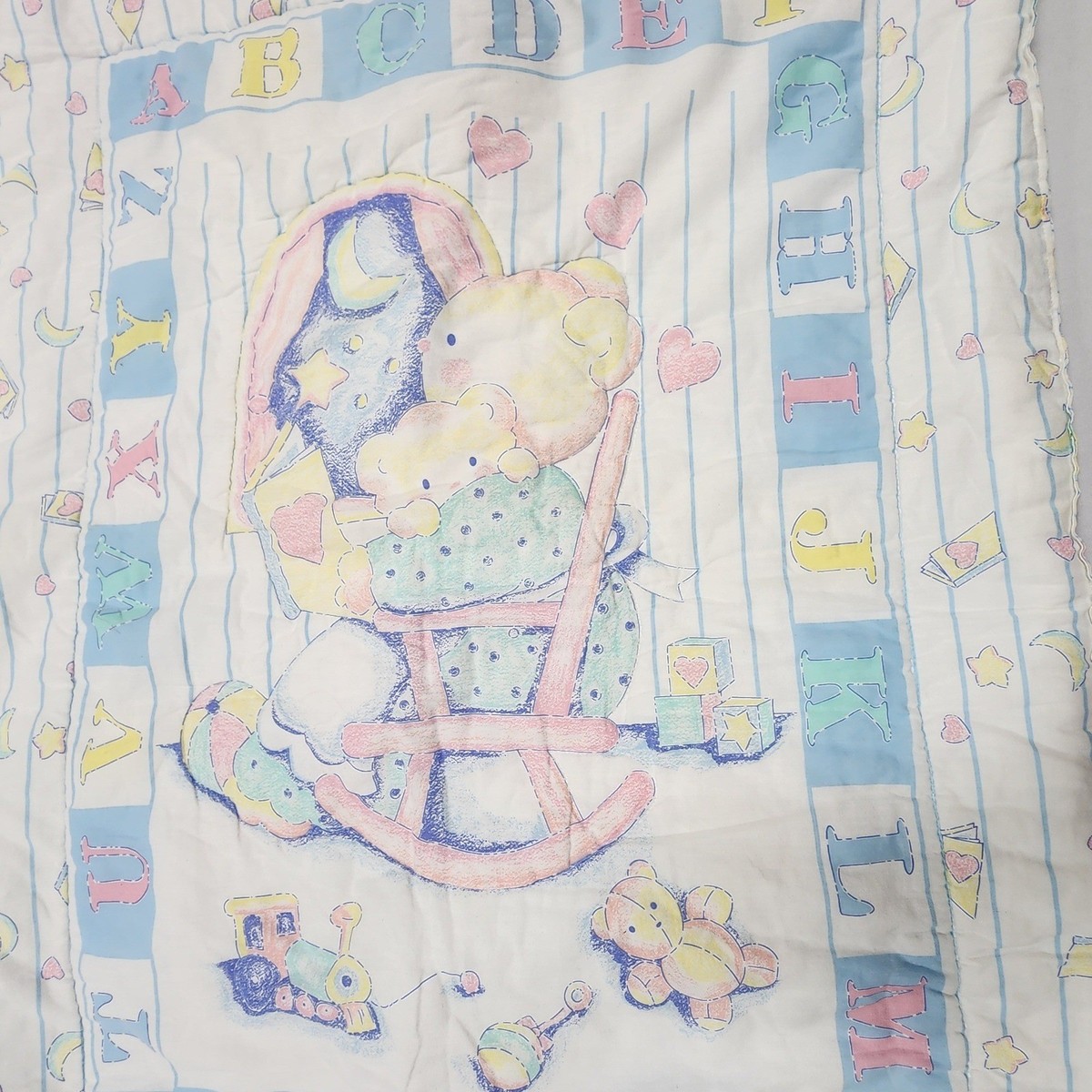 Cuddle Time Baby Quilt Blanket Alphabet ABC Teddy Bear Train Rocking Chair VTG