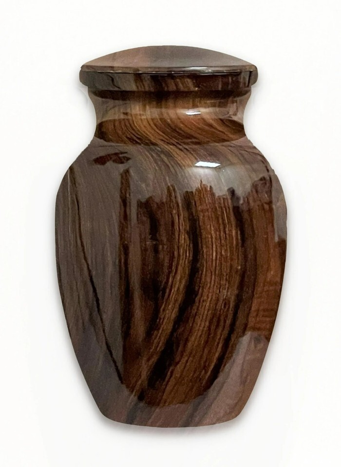 Small/Keepsake Brazilian Rosewood Aluminum Funeral Cremation Urn for Ashes