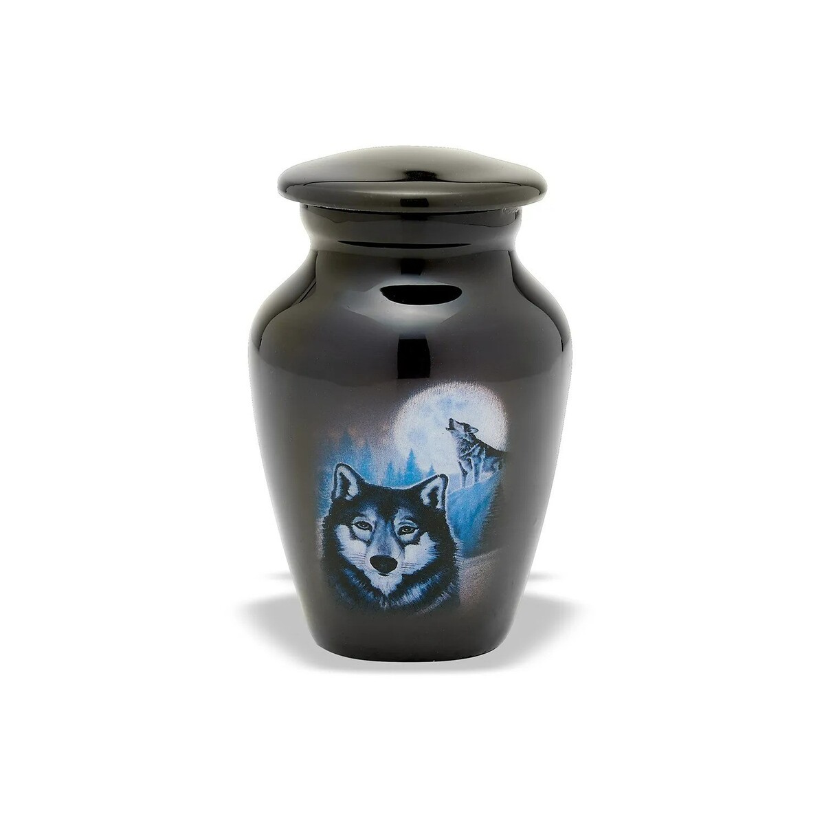 The item you are looking at is our Model Number 009-7573-3, a small/keepsake size from our Signature Artist Series, this token urn features a black finish with a wolf illuminated by moonlight.