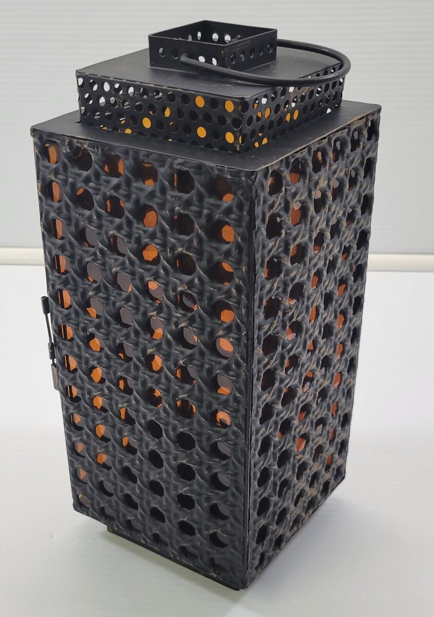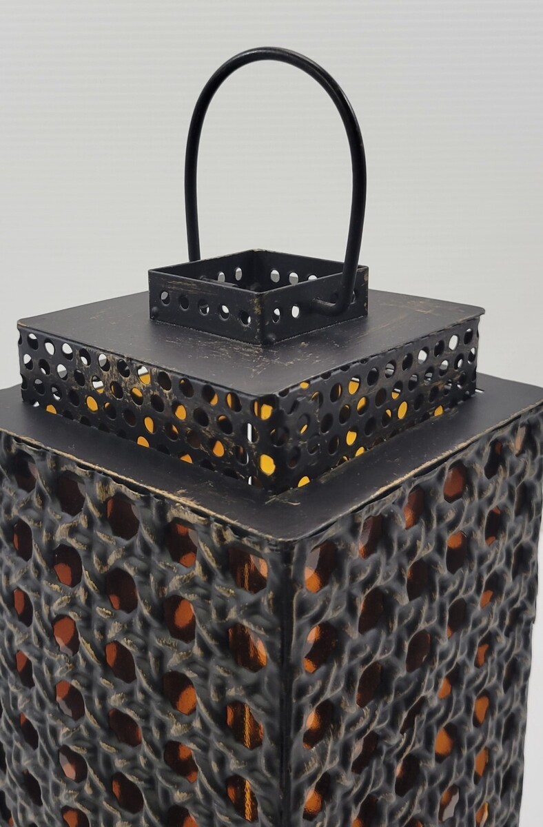 *MS) Metal and Amber Glass Tealight Candle Holder Lantern