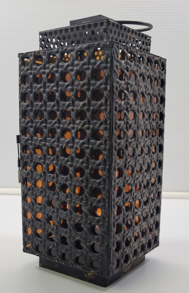 Metal and Amber Glass Tealight Candle Holder Lantern