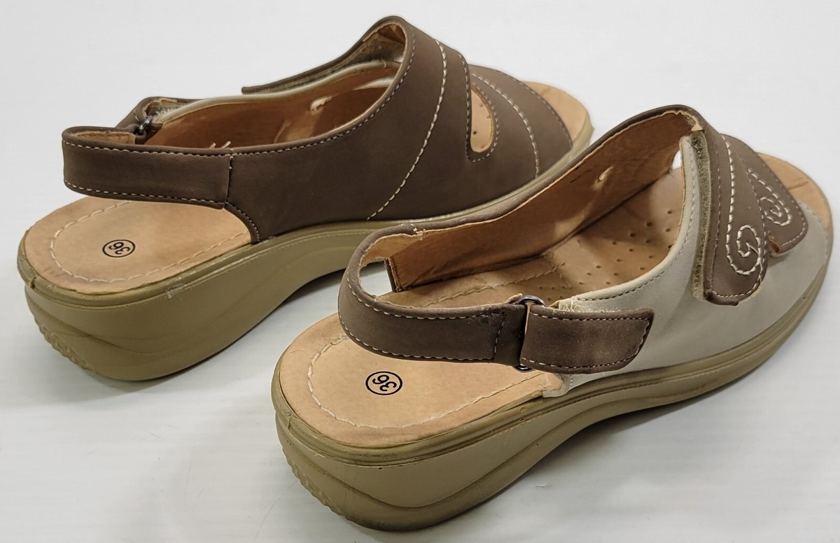 *M) Pavers Ladies Strap Beige Sandals Shoes Size 36 fit like 7.5