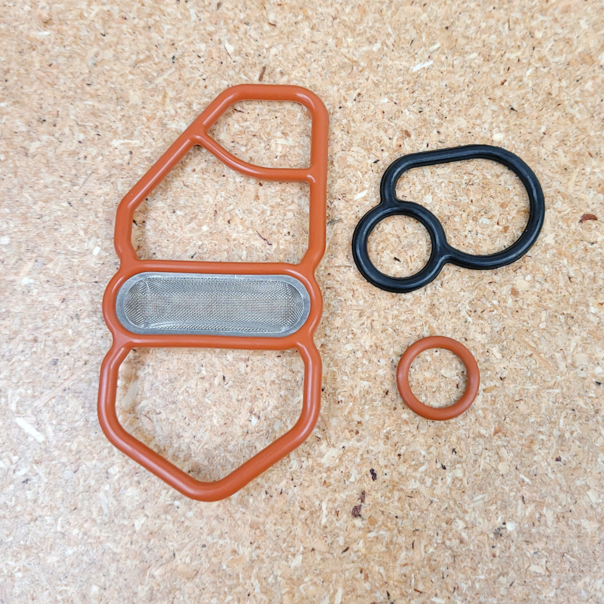 Engine Vtec Solenoid Gasket, also know as Spool Valve Variable timing solenoid. Located on the engine head near the distributor. Usually they start leaking oil because the old gasket is broken due to engine temperature. This gasket kit will replace all 3 gaskets on the valve.