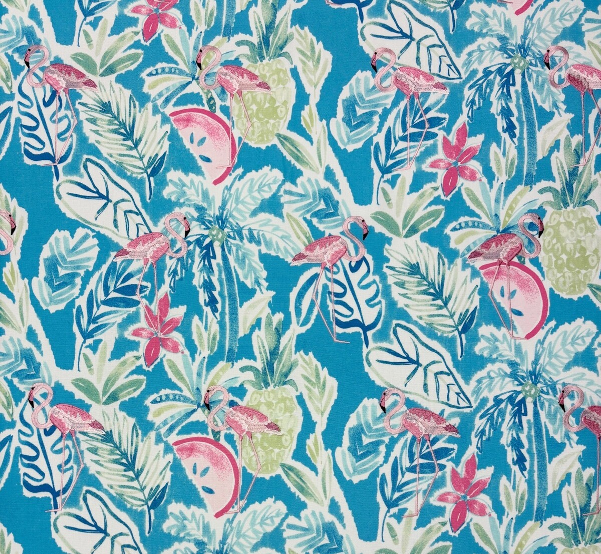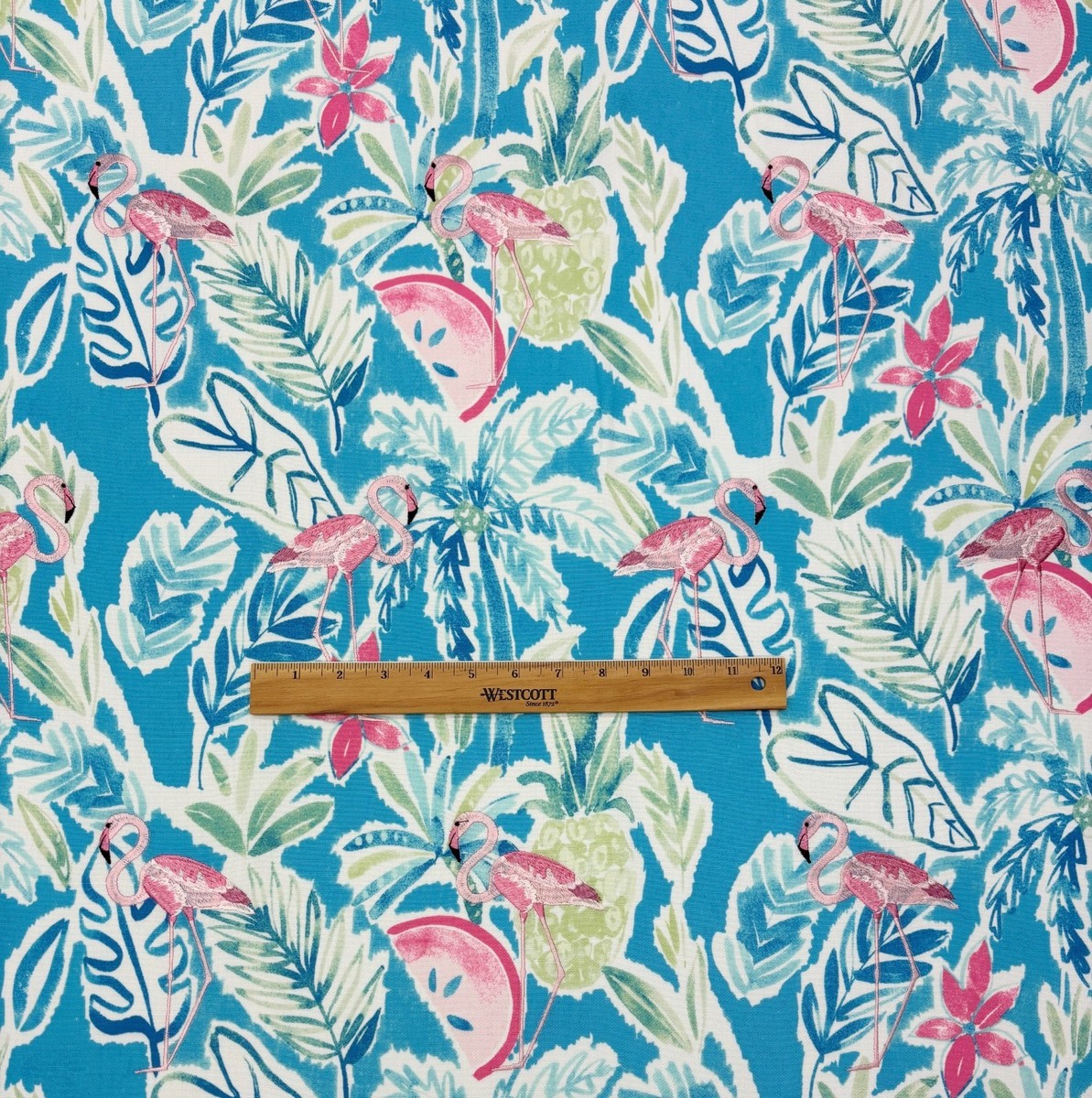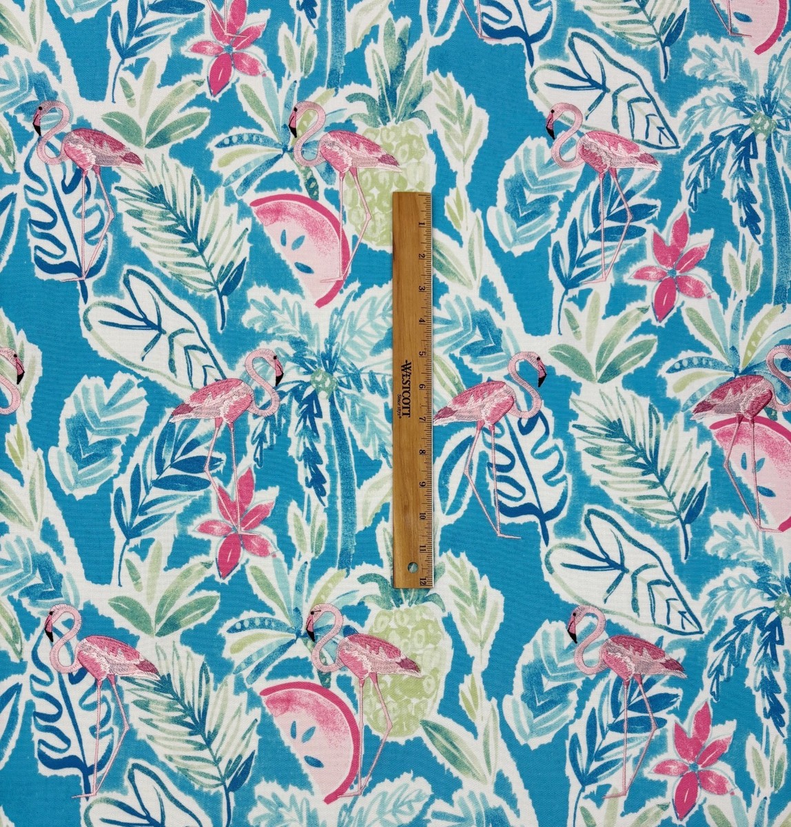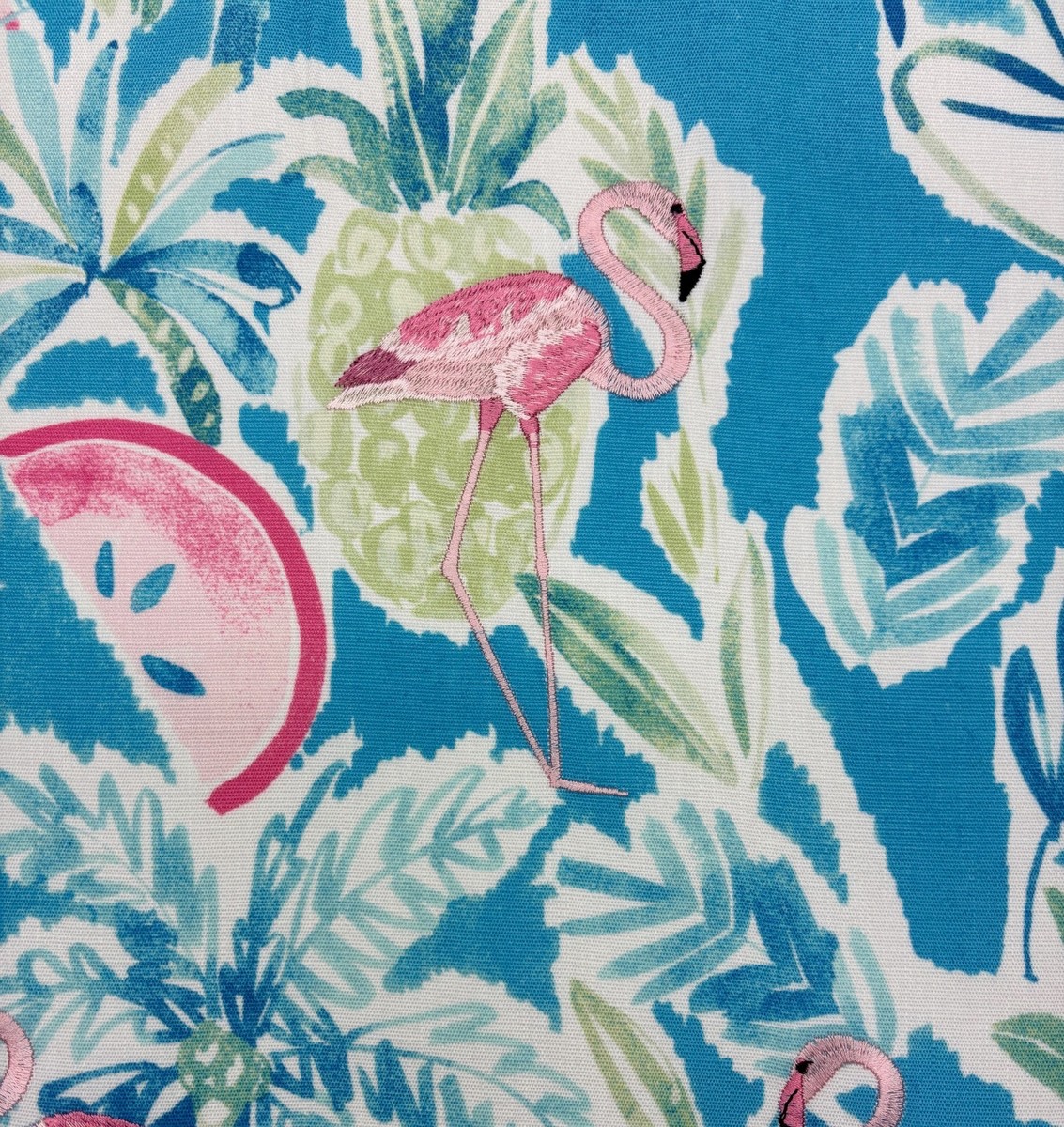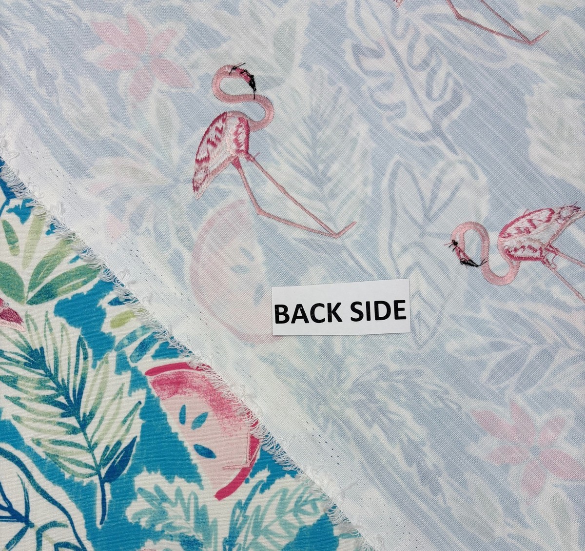 Fabric Weight Style: Medium Weight Printed Design Featuring a Beautiful Flamingo Embroidery throughout.