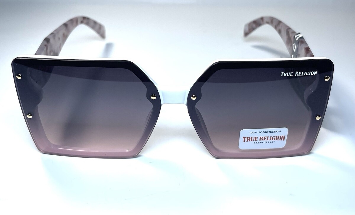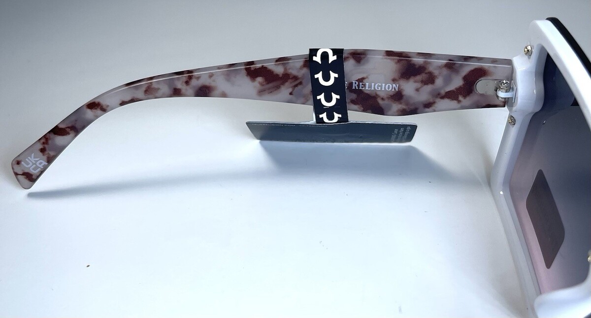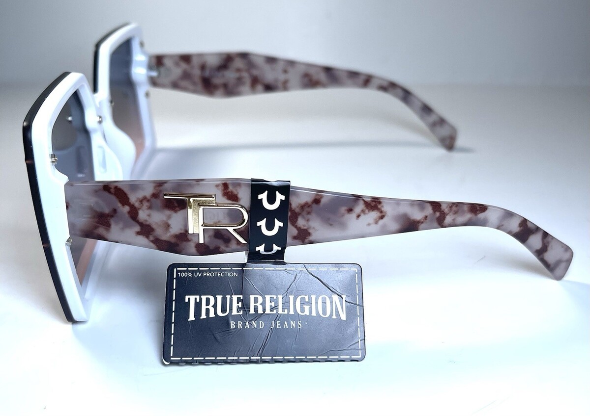 NEW TRUE RELIGION Transparent White Gold Logo Designer TR57233 Sunglasses + Case