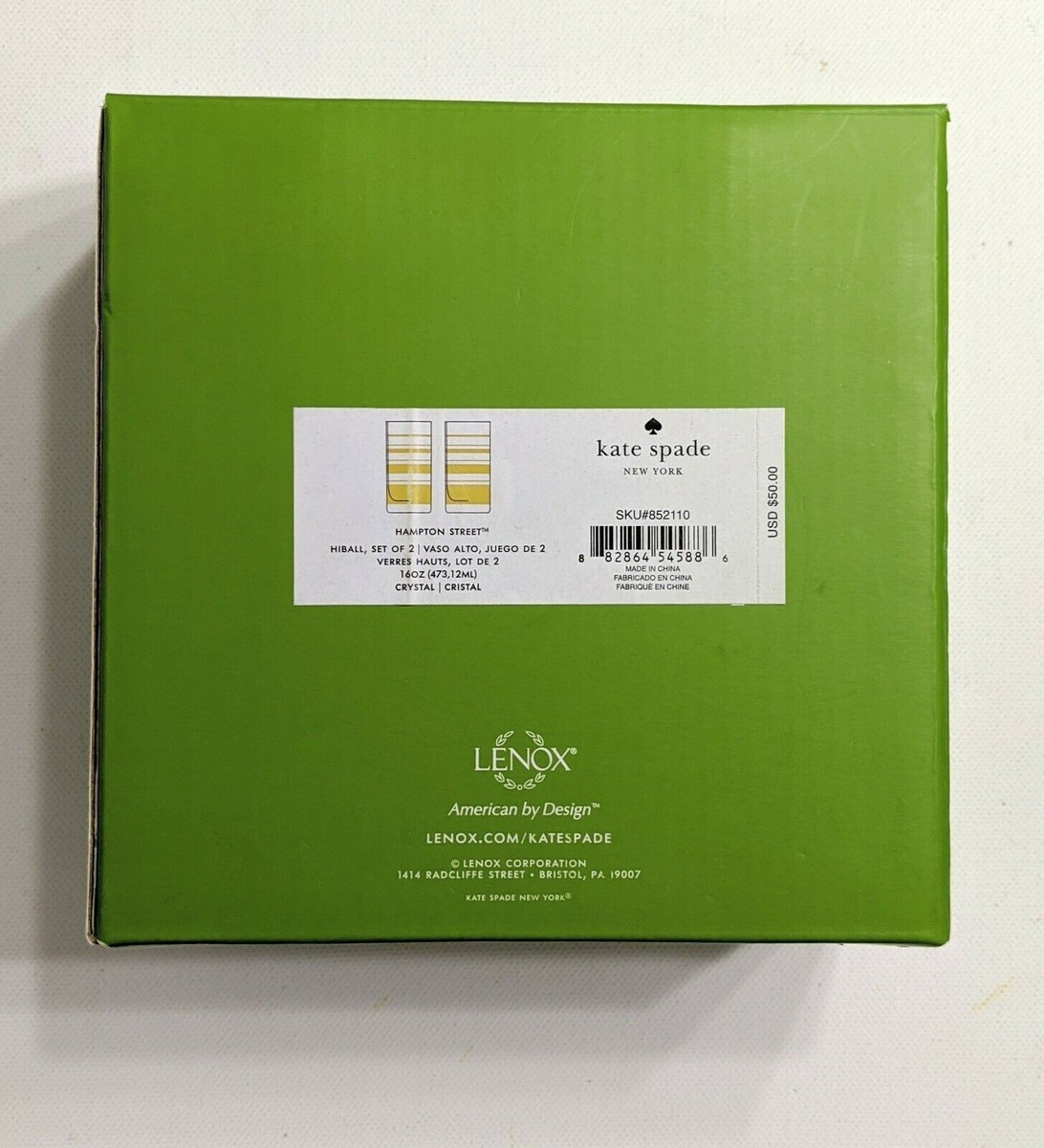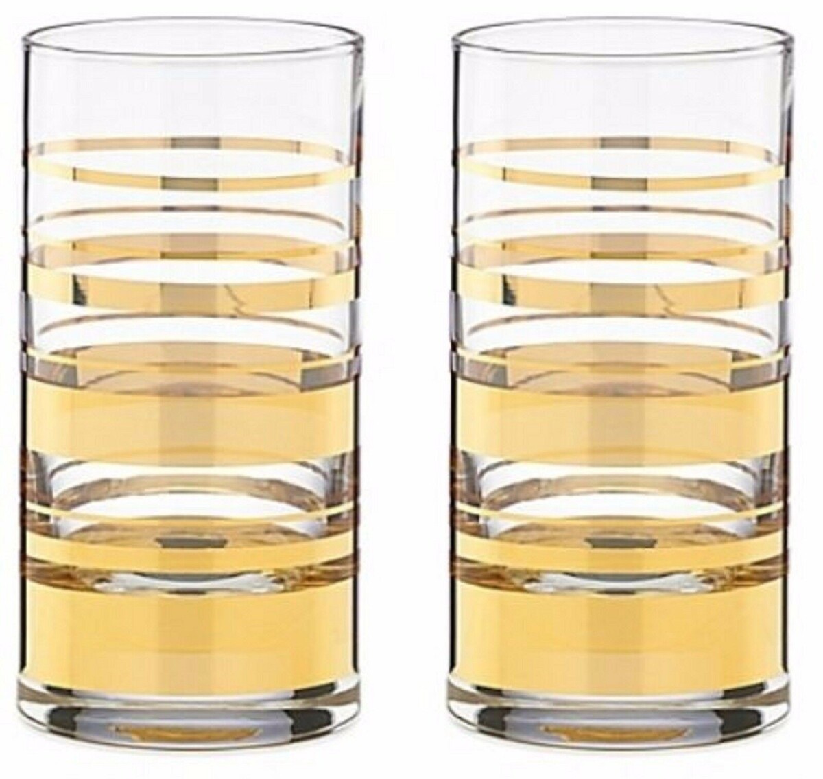 Kate Spade NY Hampton Street Highball Glasses Pair Gold Stripes Lenox NEW IN BOX