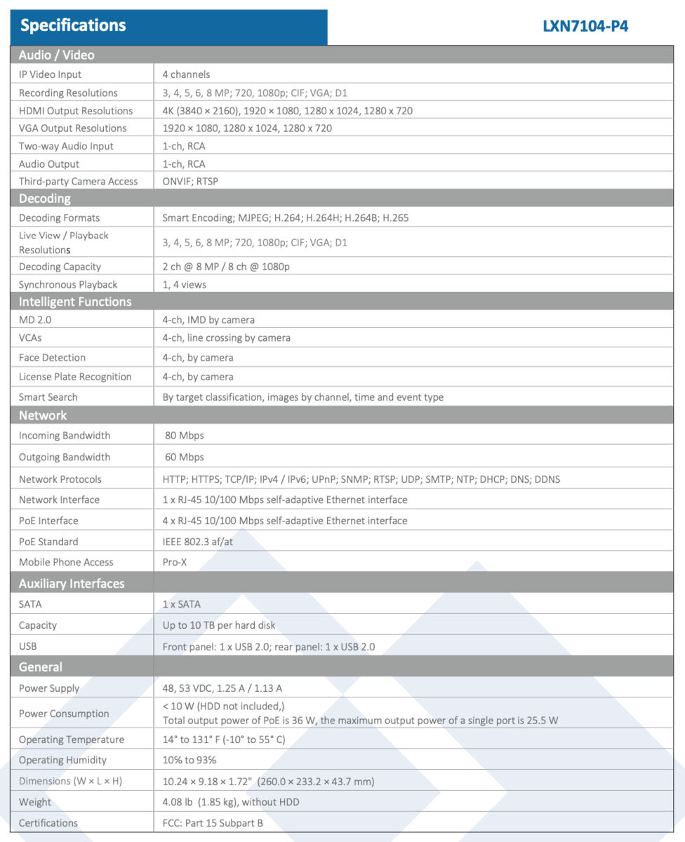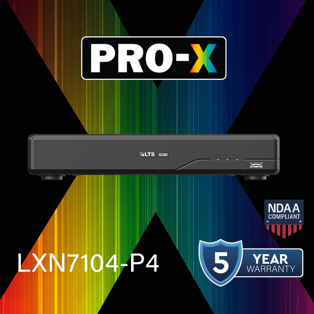PRO-X LXN7104-P4 4CH IP Up to 8MP 4 Port PoE Ai Face Detection 4K HDMI NDAA NVR