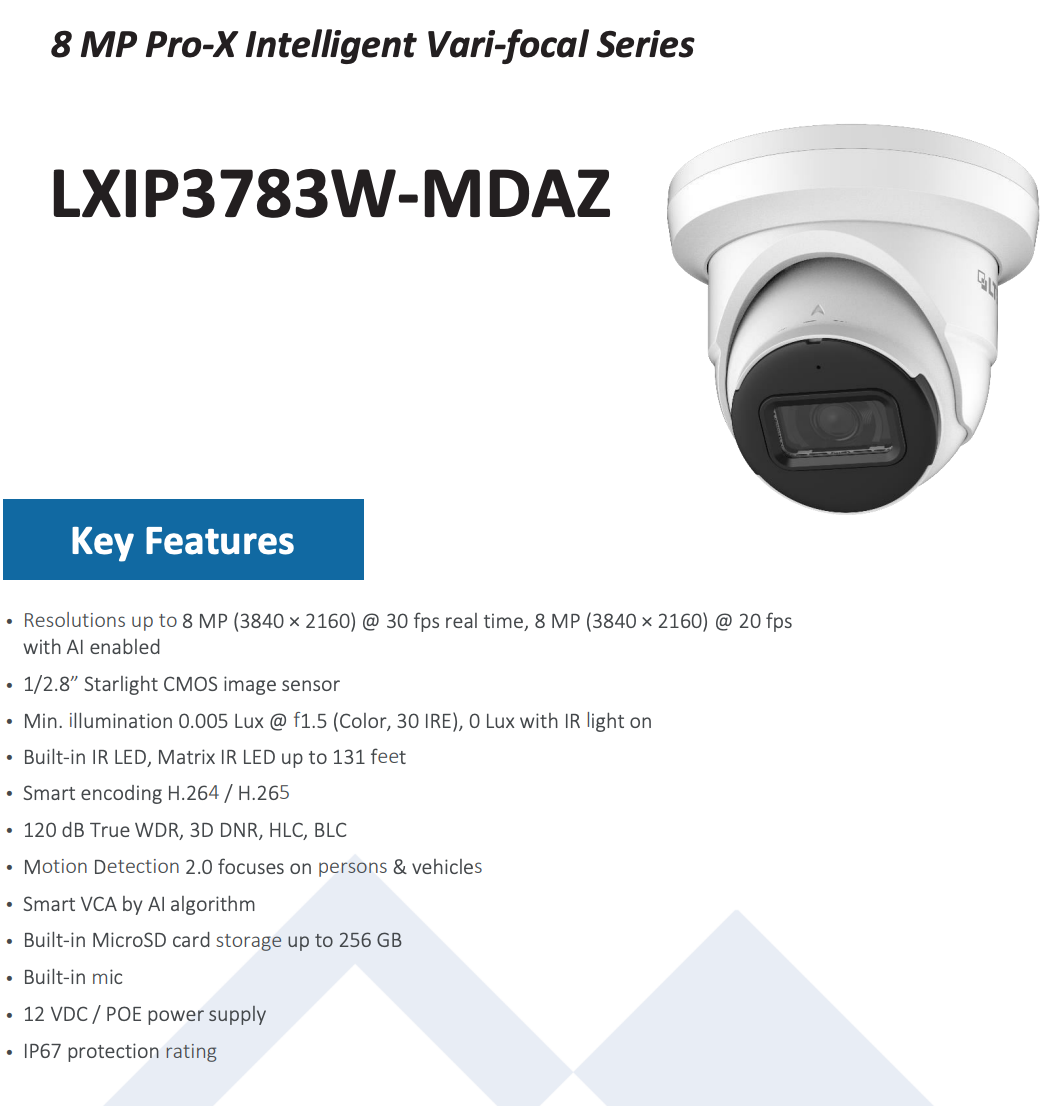 LXIP3783W-MDAZ Pro-X Ip 8MP 2.7-13.5mm 131ft and similar items