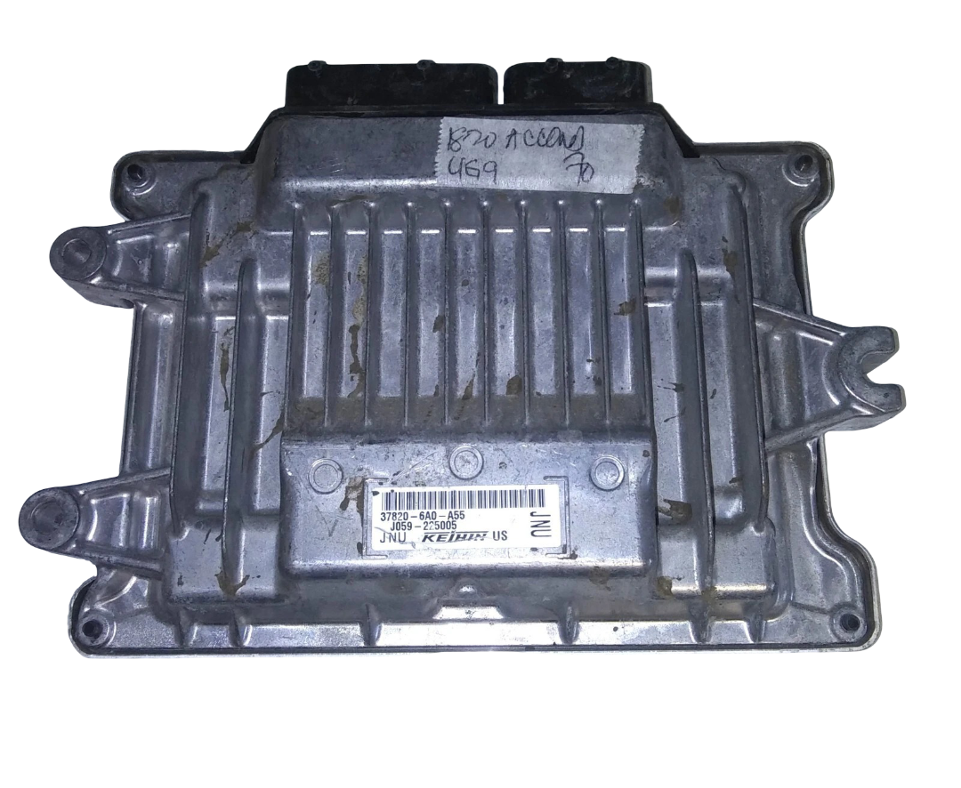 This OEM Engine Control Module (EU) fits 2018?2020 Honda Accord Sedan models and carries part number 37820-6A0-A55. It is designed to manage engine performance, fuel injection, and overall vehicle operation to ensure proper functionality. The module is in good used condition with normal wear from use, showing no cracks, broken connectors, or damage, and all mounting points are intact. This is a direct replacement OEM part and will be shipped with proper tracking.