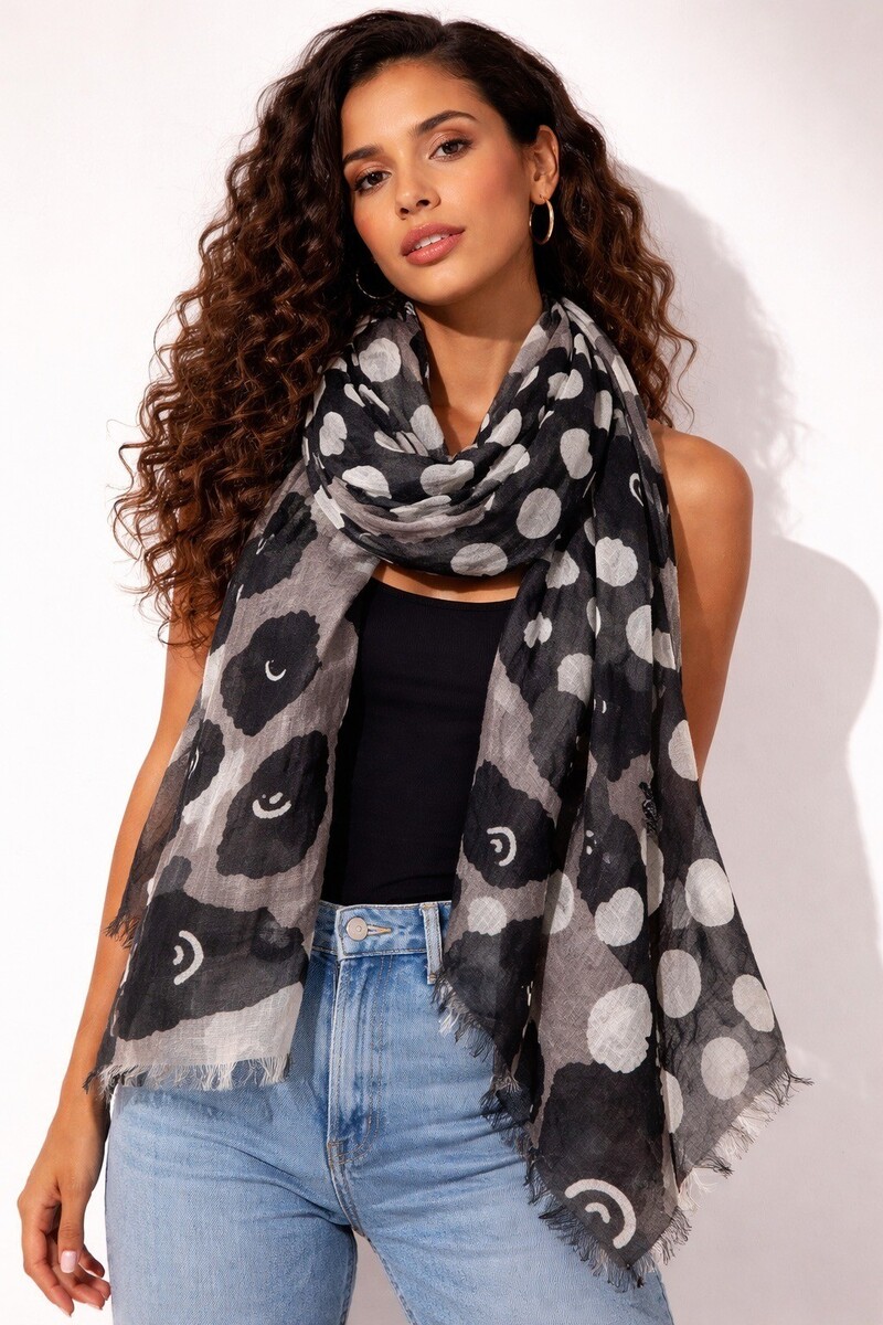 Lulu by Lulu Guinness Oversized Polka Dot Face Print Scarf Black Gray White
